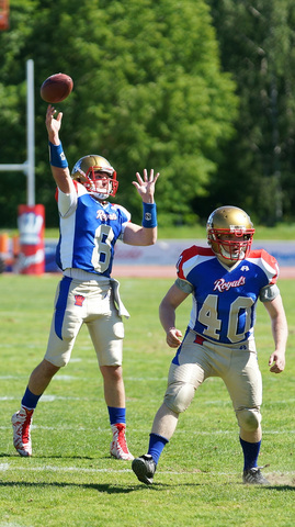 Vaahteraliigan seitsemäs peliviikko pelataan loppuun maanantaina Vaasassa, kun Kaarlen kentän iltaottelussa kohtaavat Wasa Wa1ld Royals sekä Helsinki Roosters. Kotijoukkue Royals (2–2) on sarjataulukossa neljäntenä ja siten kiinni viimeisessä pudotuspelipaikassa. Roosters (4-0) on voittanut kaikki kauden neljä otteluaan ja on Seinäjoki Crocodilesin jälkeen sarjassa toisena. Royalsin nousu nopeassa tahdissa Vaahteraliigaan huipentuu yhdeltä osalta maanantaina, kun vaasalaisyleisö saa todistaa Royalsin ja hallitsevan Suomen mestarin Roostersin yhteenottoa. – Meillä ei ole historian kannalta tässä ottelussa kuin voitettavaa, Royalsin päävalmentaja Seppo Evwaraye kertoo. – Silloin kuin vaasalaisjoukkueet ovat edellisen kerran kohdanneet Roostersin, olivat tulokset mallia 0–70 -tappio. Tiedämme, että Roosters on yksi Euroopan parhaista ja sitä mekin haluamme olla. Tämä on meille tasonmittaus. – Emme kuitenkaan nyt ole hakemassa mitään moraalista voittoa, jossa voidaan toisella puoliajalla saada pari onnistumista, kun vastustaja on vähentänyt kaasua, Evwaraye jatkaa. – Olemme todella pettyneitä, jos emme saa voittoa ja sarjapisteitä. Tästä tulee todella fyysinen kamppailu. Ei katutappeluunkaan lämmitellä - yritämme heti alusta asti lyödä käkättimeen. Royalsissa ennakoidaan, että maanantai-iltana Kaarlen kentän katsomoihin saapuu yli 1500 katsojaa, mikä olisi alkukauden yleisöennätys. Micah Brownin jalka on paremmassa kunnossa Alunperin Royalsin ja Roostersin välistä ottelua oli suunniteltu juhannusta edeltävälle viikonlopulle, mutta peli siirtyi lopulta heinäkuulle. Siirto ei kummankaan joukkueen mukaan suuremmin vaikuttanut harjoitteluun. – Meillä on tietysti nyt kaksi ottelua Pohjanmaalla samalla viikolla, kun jo lauantaina pelaamme Seinäjoella, kertoo Roostersin päävalmentaja Juha Hakala. – Hyvää tilanteessa oli se, että saimme muutamia loukkaantumisia parannettua. Muun muassa Tuukka Hämäläinen palaa takakentän kokoonpanoon Vaasassa. – Lisäksi (pelinrakentaja Micah) Brown on saanut jumppailla takareisiä kuntoon. Saimme siihenkin nyt kaksi viikkoa puskuria lisää. Brownin valmistautuminen ei tosin harjoittelun suhteen ole ollut optimaalisin. Pelinrakentaja palasi Atlantin länsipuolelta Suomeen vasta sunnuntai-iltana. Evwarayella on selvä näkemys siitä, mitä Roostersin hyökkäyksestä täytyy saada pois. Brownin lisäksi laitahyökkääjä Bernard Luster ja keskushyökkääjä Jaycen Spears ovat tärkein kolmikko. – Ja Kimi Linnainmaan voisi vielä lisätä tuohon listaan, Evwaraye jatkaa. – Meidän täytyy saada pidettyä pois meidän maalialueelta. Turnover on downs - se on yksi ratkaisu. – Vaasan heittoryntäys on yksi aggressiivisemmista, mitä on Suomessa nähty, Hakala kertoo vastaan tulevasta Royals-puolustuksesta, – 3-4-muodosta he lähettävät blitzejä todella monesta suunnasta. Tukimiehistä erityisesti Chris Young ja Cameron Grad ovat aiheuttaneet taklaamisellaan vastustajien hyökkäyksille vaikeuksia. Jalkavaivaa potenut Emmanuel Amudeng pystyy maanantaina pelaamaan, mutta alkuperäisestä vaasalaispuolustuksesta ovat loppukauden sivussa Efe Evwaraye ja Stacey Thomas. Myöskään safety Nicholas Peterson ei vielä ole täydessä pelikunnossa. – Emme voi ottaa Petersonin kanssa mitään riskejä, Evwaraye toteaa. – Jos takareisi nyt menee uudestaan, niin sitten koko loppukausi on ohi. Aitala puuttuu Roostersin puolustuksesta Royalsin hyökkäyksessä juoksupelin avainhahmoiksi ovat nousseet pelinrakentaja Isaac Fisher, keskushyökkääjä Tom Suoste sekä säännöllisesti pallonkantajana esiintyvä Young. – Meidän hyökkäyksemme on pysyttävä tässä ottelussa aikataulussa, Evwaraye kertoo. – Meidän saatava uusia yrityksiä ja pystyttävä viimeistelemään hyökkäysvuoroja, tehtävä pisteitä. – Vaasan juoksuhyökkäystä vastaan täytyy olla tarkkana boksissa, Hakala toteaa tiivistettynä. Heittopelissä Fisherin tärkeimpiä kohteita ovat Dmitri Doubitski ja Phung Nguyen sekä keskushyökkääjä Joakim Jakobsson. – Roostersin puolustus on tasainen, Evwraye kuvailee. – Siellä on jokaisella paikalla joko hyvä tai erinomainen pelaaja. Ja puolustus pelaa hyvin yhteen. Tukimies Sebastian Karbin, takamies Curtis Slater sekä linjamies Aleksi Aitala ovat olleet alkukaudesta Roostersin näkyvimpiä puolustajia. Aitala ei kuitenkaan Vaasassa maanantaina pelaa. Lisäksi loukkaantumisestaan toipunut Niko Kuikka on pelannut vahvasti kahdessa ottelussaan. Aloituskokoonpanot: Royals:| | | Hyökkäys: | | | | Puolustus: | | QB | 8 | Isaac Fisher | | DE | 4 | Chris Young | | RB | 40 | Tom Suoste | | DT | 90 | Robin Khalifa | | RB | 34 | Joakim Jakobsson | | DT | 96 | Lauri Hannula | | WR | 88 | Dmitri Doubitski | | DE | 97 | Martti Kass | | WR | 84 | Jarno Häivälä | | LB | 4 | Joshua Akena | | WR | 6 | Phung Nguyen | | LB | 44 | Juha-Matti Rajala | | LT | 77 | David Beale | | LB | 11 | Cameron Grad | | LG | 72 | Tomi Nuorala | | CB | 21 | Rufail Khalifa | | C | 55 | Vesa Mäkelä | | SS | 28 | Timo Vainio | | RG | 75 | Teemu Salo | | FS | 2 | Victor Mänty | | RT | 70 | Eric Blomgren | | CB | 32 | Emmanuel Amudeng |