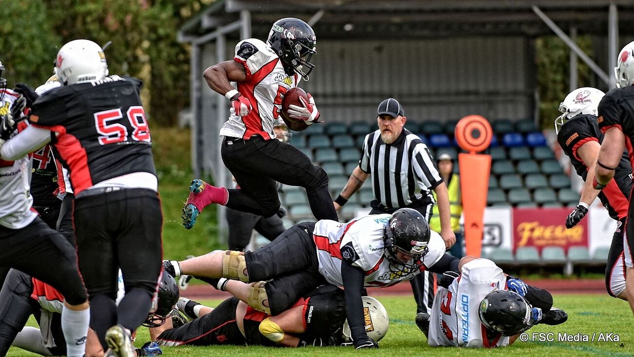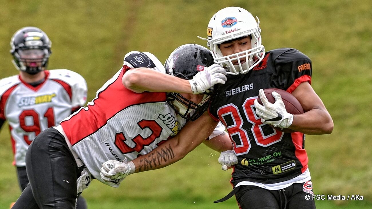 Xavier Ajuwon johti hämeenlinnalaisten ilotulitusta välierävoitossa Kuopio Steelersiä vastaan Hämeenlinna Huskies asetti jo varhain syksyllä 2015 tavoitteekseen I-divisioonan voiton ja nousun Vaahteraliigaan. Nyt tuo tavoite on yhden askeleen lähempänä toteutumistaan, sillä lauantaina Huskies kaatoi kotikentällään välierässä Kuopio Steelersin lukemin 35–12 (21–0) ja etenee näin toisena vuonna peräkkäin I-divisioona loppuotteluun eli Spagettimaljaan. Huskiesin suurin sankari oli brittikeskushyökkääjä Xavier Ajuwon, joka onloukkaantumisensa jälkeen loppukaudesta äitynyt huikeaan vireeseen. Ajuwon eteni kahdeksalla kiinniotolla 171 jaardia ja teki yhden touchdownin heittopelistä. Juoksupeleissä Steelers sai Ajuwonin 13 yritystä pysäytettyä 24 jaardiin, mutta yhden maalin britti teki myös juosten. Onnistumisia Huskiesille kertyi Ajuwonin ohessa laajalla rintamalla. 273 jaardia hyvällä onnistumisprosentilla nakuttanut pelinrakentaja Stan Bedwell heitti kolme touchdownia, joista Ajuwonin lisäksi pisteitä tekivät myös Ottopekka Leskinen ja Velipekka Jaakonsaari. Ottelun avauspisteet juoksi tukimies Archibald Barnes, joka pelasi poikkeuksellisesti pelinrakentajana niin sanotussa "Wildcat-muodostelmassa" ja runnoi vastustamattomasti kuopiolaisten taklaukset murtaen Huskiesin johtoon avausneljänneksen puolivälin jälkeen. Tomi Jokinen potkaisi lauantaina kaikki viisi lisäpisteyritystä haarukkaan. Steelersin hyökkäys sai ensimmäisellä vuorollaan kahdesti uudet yritykset. Seuraavan kerran Steelers sai kymmenenjaardisen matkan täyteen vasta puoliajan viimeisillä sekunneilla. Keskikesällä Kuopioon siirtynyt maajoukkueen viimevuosien ykköspelinrakentaja Miro Kadmiry aloitti ottelun laitahyökkääjänä, mutta siirtyi toisella neljänneksellä tilanteessa 21–0 Steelersin pelinrakentajaksi. Toisella puoliajalla Huskies siirtyi jo 28–0 -johtoon ennen kuin Kadmiry juoksi Steelersin kavennuksen. Maalin pohjusti Petteri Vilpposen 61-jaardinen eteneminen heittopelissä. Heti seuraavalla pelillä Ajuwon kuitenkin kuittasi Steelersin kirihaaveet irtoamalla Bedwellin heitosta lähes koko kentän halkoen maaliin. Päätösnumerot 35–12 syntyivät Kadmiryn heittäessä Vilpposelle ottelun viimehetkillä. Huskiesin puolustus onnistui pitämään Steelersin juoksupelin kurissa ja vierasjoukkue panostikin ottelussa enemmän heittopeliin. Peräti kahdeksan eri kuopiolaispelaajaa merkkautti itselleen kiinniottomerkinnän, mutta vastaavasti Huskiesin Mikko Rastas, Aku Kattainen sekä Mika Kulmala ottivat jokainen syötönkatkon. Loppuottelussa Huskies saa vastaansa voittajan sunnuntaina pelattavasta otteluparista Helsinki Wolverines – Jyväskylä Jaguaarit. Mikäli Wolverines voittaa, pelataan Spagettimalja Helsingissä. Mikäli voittajaksi selviytyy Jaguaarit, isännöi Huskies finaalia.