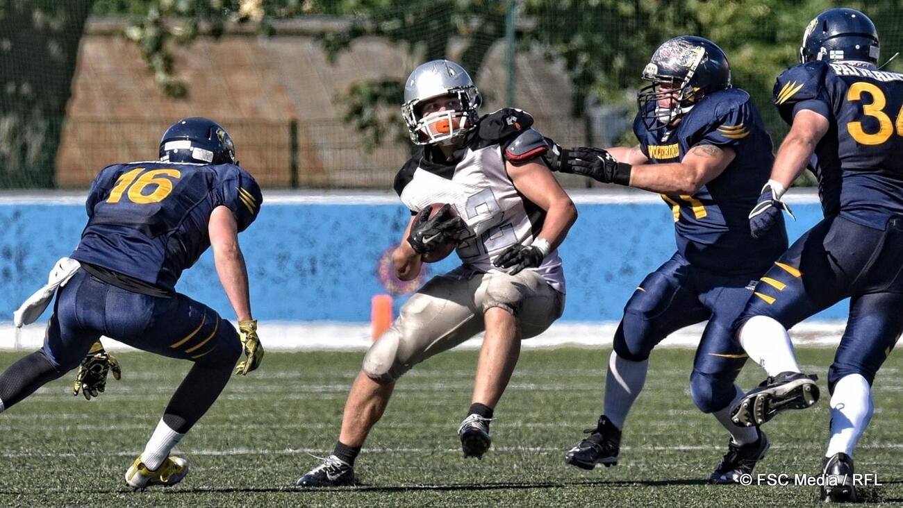 ![]() Wolverinesin Antonio Harris keräsi kentän suurimman taklaussaaliin (6,5 taklausta) ja otti lisäksi kaksi syötönkatkoa. Kuva: FSC Media / Riku Flink ![]() Jaguaarien keskushyökkääjä Joni Kähönen on kauden aikana ollut yksi I-divisioonan parhaimmista keskushyökkääjistä. Välierässä tuloksena oli hyvällä keskiarvolla 126 juostua jaardia. Kuva: FSC Media / Riku Flink |