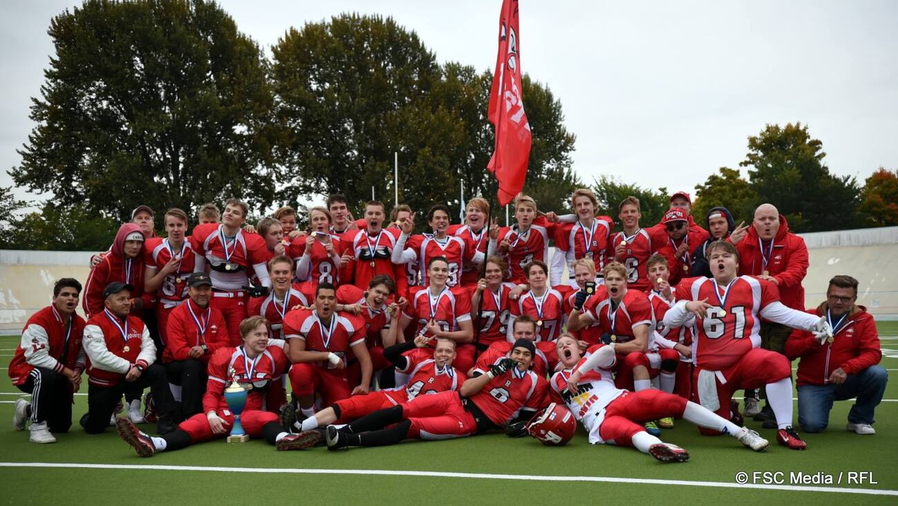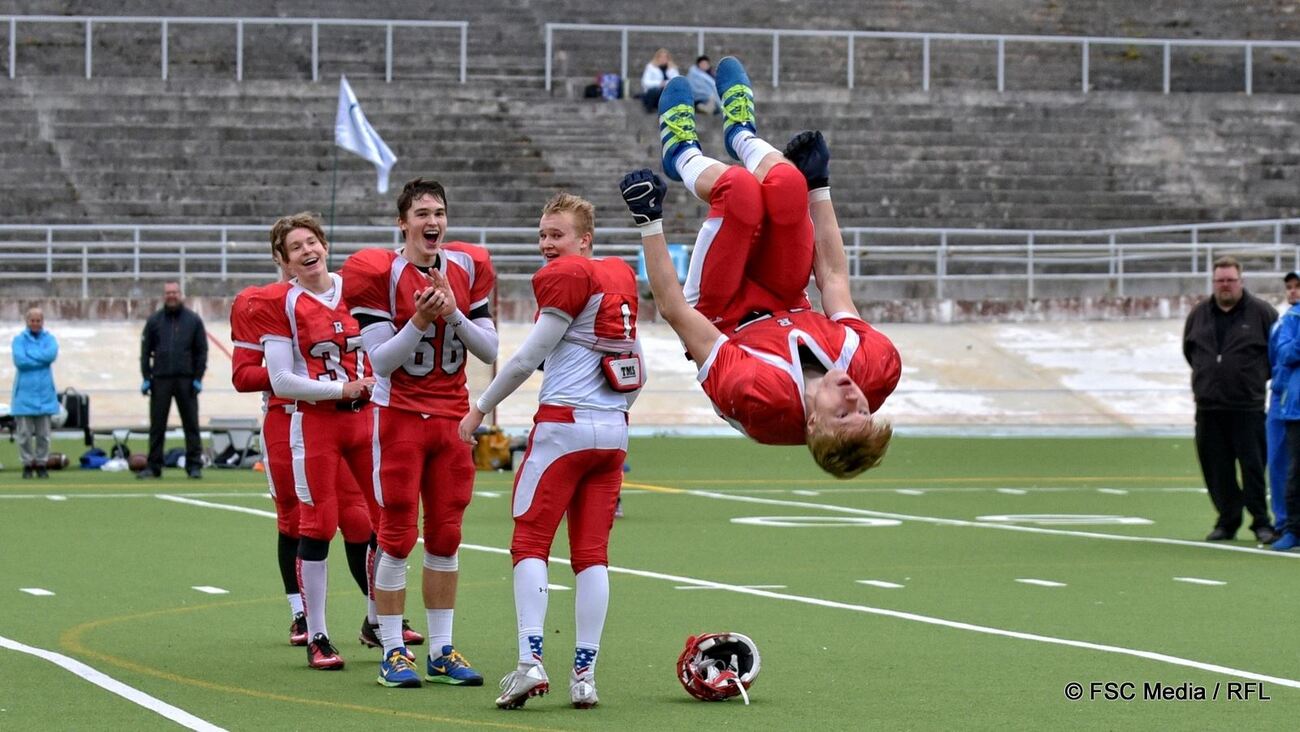 Santeri Valpas ja Oliver Jyväsjärvi johdattivat helsinkiläiset voittoon Vantaan TAFT:sta 17-vuotiaiden 11 pelaajan SM-finaalin voittoon Helsingin Velodromilla pelasi loppuottelun isäntäjoukkue Helsinki Roosters. Vierasjoukkue Vantaan TAFT taisteli ja nousi puoliaikaan mennessä tilanteeseen 28–16. Toisella puoliajalla ottelussa nähtiin kuitenkin vain yksi osuma, josta vastasi kotijoukkue. Roosters juhli viileässä syysilmassa mestaruutta lukemin 36–16. – Olen ihan hirveän ylpeä. Nämä pojat ovat tehneet todella paljon töitä, Roostersin päävalmentaja Mikko Koikkalainen sanaili ottelun jälkeen. Samoilla linjolla oli myös ottelun parhaana palkittu keskushyökkääjä Santeri Valpas. – Olen missannut yhdet treenit joulukuusta finaalin mennessä, ja sekin tapahtui koska olin 40 asteen kuumeessa. Jos haluat saada kultaa, se työ pitää vain tehdä. Ottelu sai salama-alun, kun kauden aikana loukkaantumisista kärsinyt Oliver Jyväsjärvi palautti aloituspotkun suoraan maaliin. Avausneljänneksellä Valpas sai hyökkäyksen linjalta hyvän tilanraivauksen ja kuljetti pallon 35 jaardin päästä maaliin. Kun Kim Saarijärvi osui molempien touchdownien jälkeen lisäpistepotkuissa, oli ottelu ensimmäisen neljänneksen jälkeen tilanteessa 16–0. Valpas juoksi jo ensimmäisen puoliajan aikana 120 jaardia ja teki toisen neljänneksen aikana lukemiksi 22–0. TAFT:n hyökkäyksellä oli ensimmäisellä neljänneksellä käynnistymisvaikeuksia, mutta toisella neljänneksellä Otso Bullin ja pelinrakentaja Jesper Korkalaisen juoksuilla sekä Matias Hyytiäisen kiinniotoilla siniset vantaalaiset saivat peliään kulkemaan. Lopulta Hyytiäinen teki Korkalaisen heitosta kavennusosuman, jonka jälkeen Antti Kekkonen nosti TAFT:n 14 pisteen päähän. Jyväsjärvi kuittasi kuitenkin juoksupelillä nopeasti tilanteeksi 28–8. Vantaalaisten puolustus oli finaalissa aggressiivinen pallonriistoissa ja useampikin Roosters-hyökkäysvuoro päättyi rähmäykseen. Aivan ensimmäisen puoliajan lopulla tukimies Iivo Koski käytti helsinkiläisten pudotuksen täydellisesti hyväkseen ja kuljetti pallon suoraan maaliin. Kekkonen potkaisi puoliaikalukemiksi 28–16. Toinen puoliaika oli puolusten hallintaa. TAFT kuljetti pitkällä heittopelillä pallon kertaalleen helsinkiläisten maalialueelle, mutta touchdown kumoutui lopulta rangaistuksen vuoksi. Voimakkaalla juoksumuodostelmilla palloa liikuttanut Roosters onnistui Jyväsjärven maalilla vielä kerran maalinteossa, minkä jälkeen Saarijärvi potkaisi loppulukemat 36–16.