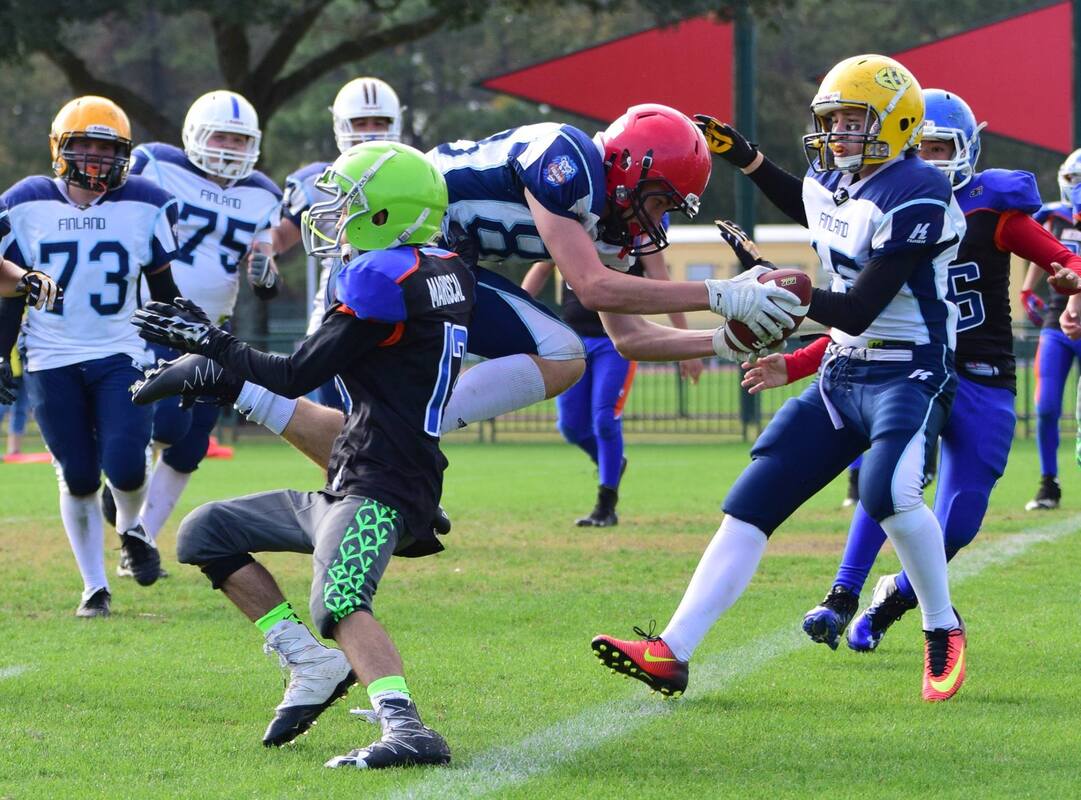 Finland Blue Lionsin ottelut Orlandossa: Junior varsity eli alle 13-vuotiaat (peliaika 2 x 15 minuuttia)Maanantai 5.12. Puebla (Meksiko) – FInland Blue Lions 27–0 Torstai 7.12. Finland Blue Lions – EAFL Falcons (Yhdistyneet arabiemiraatit) 0–6 Finland Blue Lions – Puebla 18–9 Lauantai 9.12. EAFL Falcons – Finland Blue Lions