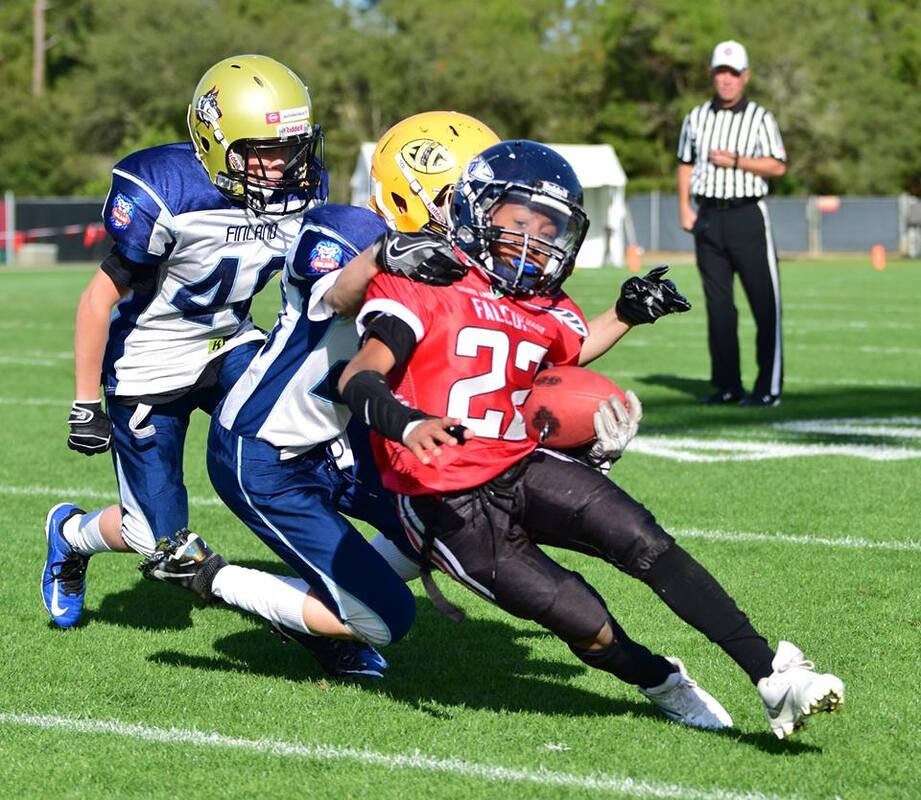 U13-joukkue joutui taipumaan FalconsilleBlue Lionsin 13-vuotiaat uurastivat Floridan nurmikentillä työmäärän, joka saa monen hengästymään pelkästä ajatuksesta. Maanantaista lauantaihin kestäneessä turnauksessa nuoret suomalaiset pelasivat yhteensä 4 ottelua. Päätöspelissä lauantaina vastassa oli Yhdistyneiden arabiemiaattien EAFL Falcons eli joukkue, joka oli torstaina vain niukasti parempi lukemin 6–0. Lauantaina Falcons oli liikkeellä paremmalla sykkeellä ja karkasi 26–0 -voittoon. – Pojat oli aika hermostuneita. Ehkä turnausväsymys alkoi jo painaa, pohti hyökkäyksen valmentaja Mika Eloranta. – Joukkuetaklaamisessa teimme helpohkoja virheitä, joista sitten vastustaja pääsi rankaisemaan. Kun Eloranta asettaa koko Orlandon matkan harjoituksineen ja otteluineen tarkasteluun, on tulos myös 13-vuotiaiden osalta erittäin onnistunut. Torstaina otettu komea voitto meksikolaisesta Pueblasta oli turnausviikon ehdoton kohokohta. – Kokonaisuudessaan äärimmäisen positiivinen asia oli se, että voitettiin Meksiko ja kyllä pojat paransivat peliään koko turnauksen ajan. Plussan puolelle menee turnaus kaikin puolin joka jätkän osalta.