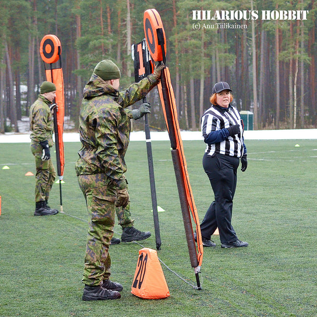 ![]() NDU Black Knights saa runkosarjan päätösottelussa vastaansa Aalto Predatorsin. Vain voittajan kausi jatkuu, joten Maanpuolustuskorkeakoulun mustilta ritareilta aggressiivista taklauspeliä nähdään varmasti jälleen. Kuva: Anu Tiilikainen. |