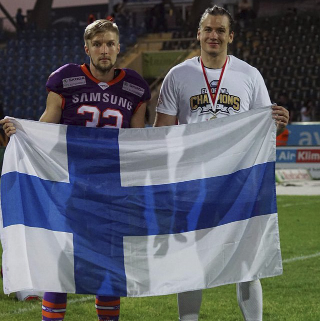 Santeri Inkisen Frankfurt Universe kaatui Lionsin käsittelyssä 55–14 Jo ennen lauantaita oli tiedossa, että suomalaispelaaja tulee voittamaan Big6-sarjan finaalin eli Eurobowlin. Vastakkain loppuottelussa olivat tukimies Roni Salosen edustama, hallitseva Eurobowl-mestari Brauschweig New Yorker Lions sekä takamies Santeri Inkisen Frankfurt Samsung Universe. Braunschweig karkasi jo avauspuoliajalla selvään johtoon ja liihotti lopulta voittoon lukemin 14–55 (7–48). – Meidän hyökkäys toimi loistavasti, Salonen kommentoi tyytyväisenä. – Voisi sanoa, että olimme varmempia: valmistautumisessa vastustajan scouttauksessa oli iso ero. Mitään pois ottamatta Samsung Universen aiemmilta vastustajilta uskon, etteivät he olleet saaneet kunnon sparrausvastustajaa alle. Braunschweigin hyökkäyksen veturina olivat tutut hahmot: keskushyökkääjä David McCants kantoi päävastuun juoksupelistä ja pelinrakentaja Casey Thierraultin yhteistyö erityisesti Saksan maajoukkuelaitahyökkääjä NIklas Römerin sekä Nathaniel Morrisin kanssa tuotti avauspuoliajalla viisi touchdownia. Kotiyleisönsä edessä pelanneen Universen hyökkäys aloitti vahvasti, mutta ottelun ensimmäinen hyökkäysvuoro päättyi pallonmenetykseen Lionsin maalialueella, minkä jälkeen Braunschweigin puolustus sai frankfurtilaisista pitävän otteen. Vasta ensimmäisen puoliajan loppupuolella - tilanteessa 0–35 - Universe onnistui ensimmäisen kerran maalinteossa. Tämän Braunschweig kuitenkin kuittasi vielä kahdella touchdownilla. Ensin Morris teki illan neljännen osumansa ja viimeistään kokeneen takamiehen Tissi Robinsonin syötönkatkosta pohjustama 7–48 katkaisi Universen selkärangan jo taukoon mennessä. Toisella puoliajalla kumpikin onnistui maalinteossa kertaalleen, mutta voittajasta ei ollut enää epäselvyyttä. – Tiesimme puolustuksessa hyvin, mitä he pelaavat milläkin henkilöstöllä mistäkin muodostelmasta, Salonen kommentoi. – Itselläni oli melko vaisu ilta - tein oma työni. Muutaman ohitaklauksen kun olisin välttänyt, niin olisi omakin ilta ollut huikea. Saloselle merkittiin Eurobowlissa kolme soolotaklausta ja muutama avustus. Saksan pääsarjassa, GFL:ssä suomalaistukimies johtaa joukkueensa taklaustilastoa.