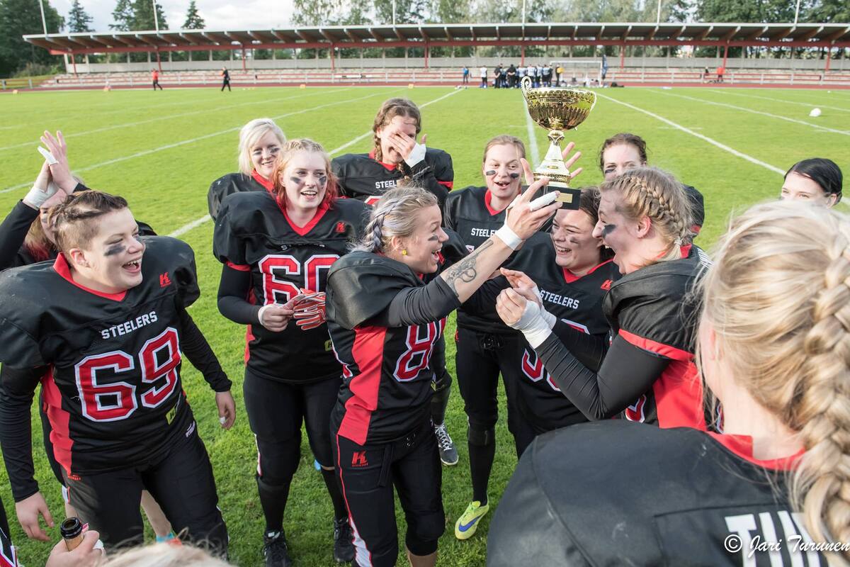 Naisten II-divisioonan loppuottelu SU 27.08.2017 | 16:00 | Väinölänniemi, Kuopio: Kuopio Steelers – Lohja Lionesses 37–18 (0–0, 22–6, 0–0, 15–12)Katso ottelu Lohja Lionsin YouTube-kanavalla