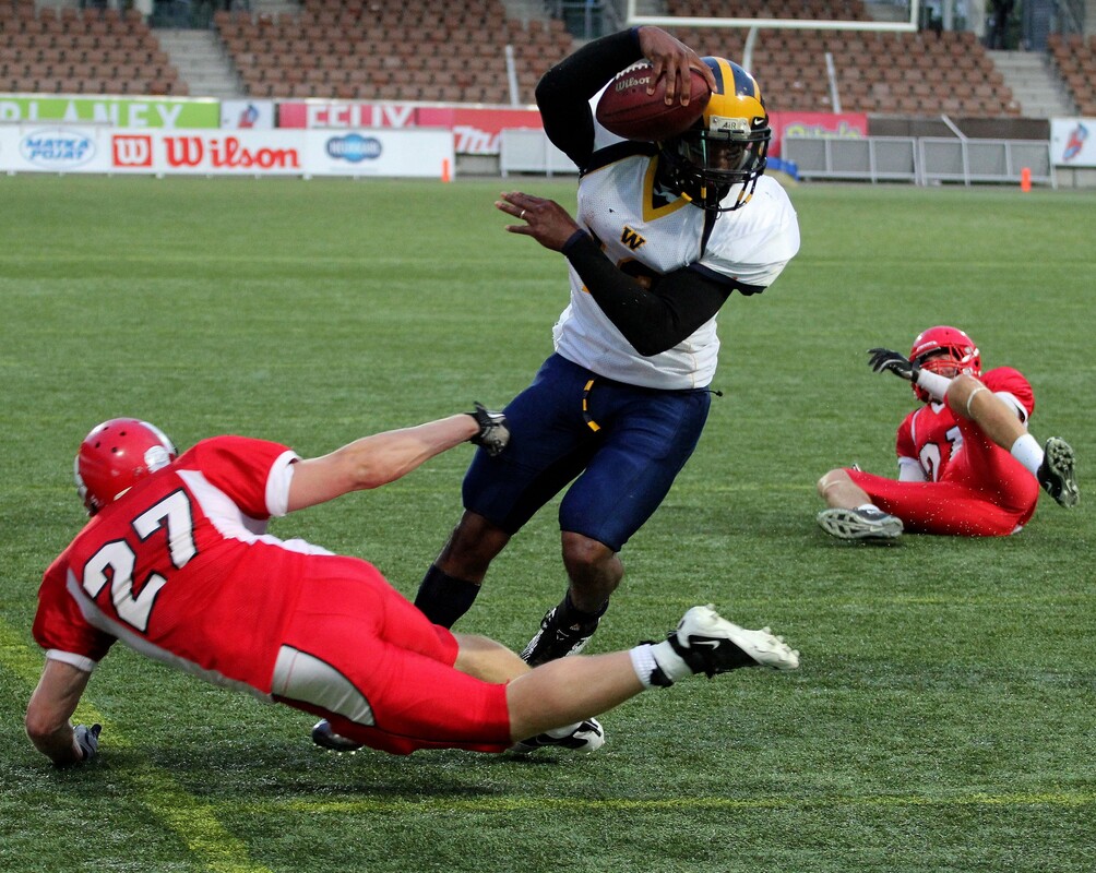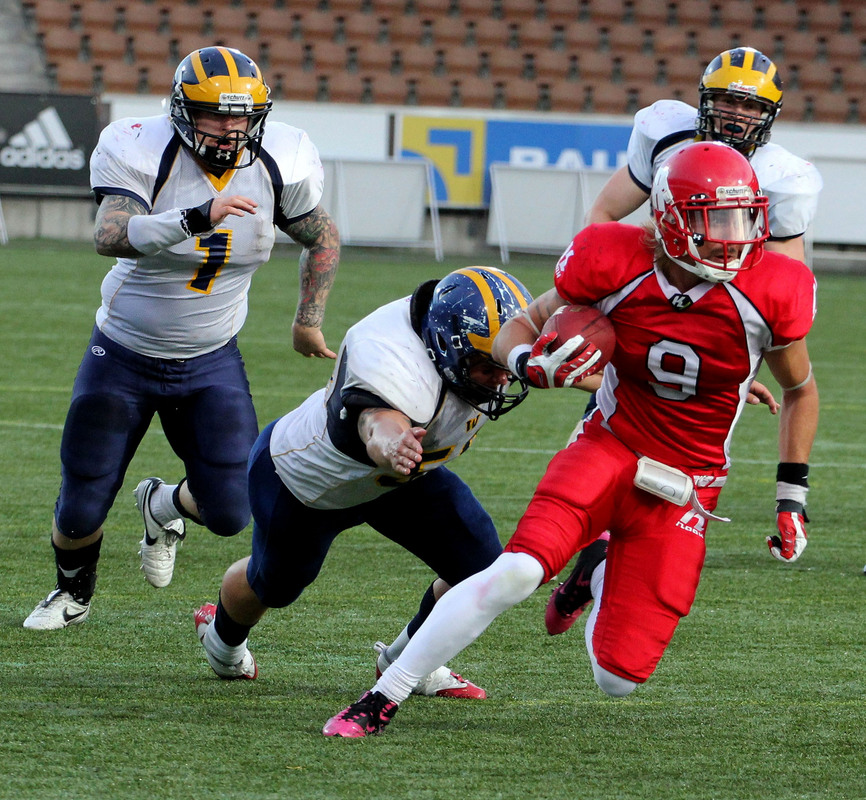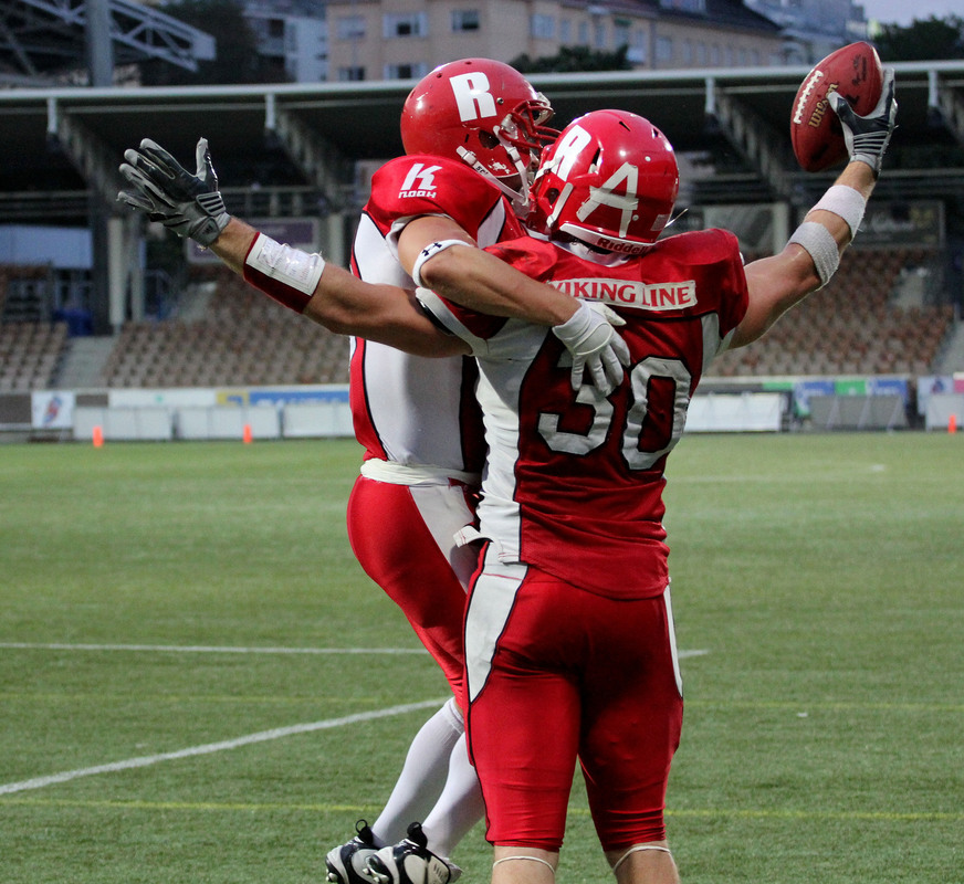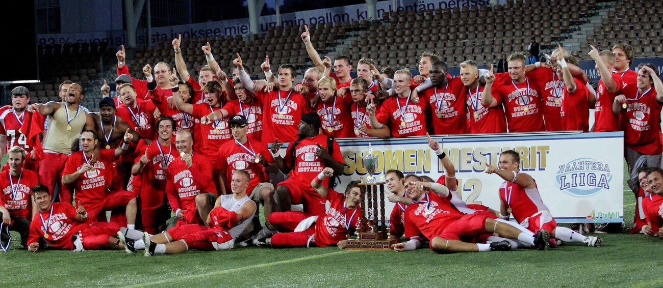 Helsinki Roosters voitti 15. Suomen mestaruutensa numeroin 17-20 (7-0) Vaahteramalja XXXIII oli todellinen jännitysnäytelmä, kun ottelun ratkaisu nähtiin vain muutamia sekunteja ennen ottelun loppua, kun Robert Johnson heitti voittotouchdownin Stephen Peytonille. Helsingin herruuden, ja siis 15. kerran Vaahteramaljan otti nimiinsä Helsinki Roosters kaatamalla Wolverinesin 20-17. Viime kaudella Roosters voitti vain yhden ottelun. Lajin historian menestyksekkäin seura juhli mestaruutta edellisen kerran kahdeksan vuotta sitten. Johnson heitti ottelussa peräti 53 kertaa, joista 32 onnistui. Touchdowneja syntyi kolme, kaksi Peytonille ja yksi Markus Lievoselle. Eniten kiinniottoja keräsi Torsten Malm, 9. Wolverinesin Cedric Johnson heitti 12 kertaa. Joukkue luotti enemmän juoksupeliinsä josta päävastuun kantoi Stephen Stokes. Hän juoksi 14 yrityksellä 148 jaardia ja kaksi touchdownia. Eniten taklauksia kirjautti Roostersin Tuomas Nurmi, 12,5. Vaahteramalja XXXIII keräsi 2550 katsojaa Sonera Stadiumille. Valokuvia Vaahteramalja XXXIII:stä: jat.kuvat.fi Jari Turunen Helsinki Roosters Salla Lahti |