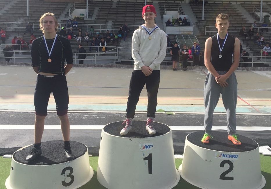 U15 sarjan mitalistit: Vas. Oskari Tapola, Tommy Nylund ja Frans Saarelainen.