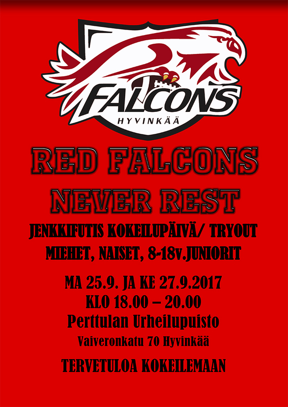 Kokemuksen ja innon yhdistelmällä Falcons haluaa nousta III-divisioonasta ylempiin divisiooniin. Kaudella 2017 III-divisioonassa viimeiseksi jäänyt Hyvinkää Falcons lähtee hakemaan toimintaansa uutta nousua kokeneen jenkkifutisvaikuttajan J-P Kuusiston johdolla. Toisen polven pelaaja ja ensimmäinen toisen polven Vaahteraliiga-valmentaja aloitti uransa Vantaan TAFT:ssa vuonna 1989 ja pelasi omalla urallaan Vaahteraliigaa TAFT:n lisäksi myös Wolverinesissa sekä nuorten maajoukkueissa. Vaahteraliigassa hän toimi TAFT:n päävalmentajana vuonna 2013–2014 valmentaen vantaalaiset ensimmäisellä kaudellaan neljänneksi. Falconsin tiedotteen mukaan Kuusiston johdolla pidetyssä ensimmäisessä palaverissa oli mukana noin kolmisenkymmentä pelaajaa. Lokakuussa joukkue järjestää avoimet harjoitukset, johon kaikki halukkaat voivat osallistua. – Ensi kesän joukkue on rautainen annos vanhaa kokemusta ja taitoa, arvioi Kuusisto Falconsin tiedotteessa. – Intoa ja menestyksen nälkää miesten joukkueeseen lisäävät Falconsin juniorit, joilla on jo 4–6 vuoden kokemus juniorisarjoista. Falcons ja J-P Kuusisto ovat tulevaisuuden tavoitteeksi asettaneet palauttaa joukkue I-divisioonaan taistelemaan mestaruuksista. |