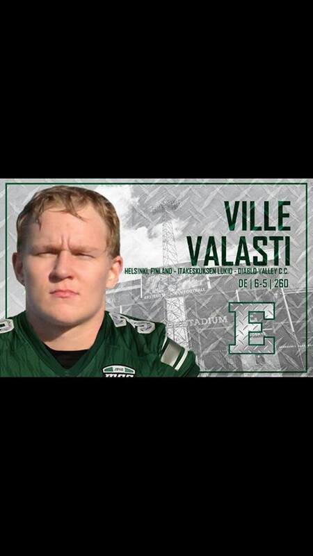 Puolustuksen linjamies Ville Valasti debytoi Eastern Michiganin paidassa lauantaina Odottavan aika on pitkä. Puolustuksen linjamies Ville Valasti on saanut odottaa ensimmäistä NCAA:n I-divisioona-otteluaan vuoden alusta alkaen. Vuosi sitten ensimmäistä kauttaan Diablo Valley Vikingsin junior collegessa pelannut Valasti iski tilastoihin ja highlights-filmeihin sellaiset tulokset, että syystäkin isojen yliopistojen värvääjät hakkasivat sormen päät tunnottomina sähköposteja ja puhelinnumeroita. Jo syksyn 2016 aikana Valastia lennätettiin ympäri Yhdysvaltoja tutustumaan kampuksiin, kuulemaan yksityiskohtia opiskelusta ja ennen kaikkea jenkkifutiksen ohjelmasta. Helmikuun alussa Valasti oli valintansa tehnyt. Hän siirtyi Eastern Michigan Universityyn. Kaikki näytti hyvältä, mutta horisonttiin oli alkanut kerääntymään tummia pilviä. Valasti on ehtinyt uransa aikana pelaamaan Vaahteraliigaa sekä kasvattajaseurassaan Helsinki Wolverinesissa että Helsinki Roostersissa. Lisäksi hän on suorittanut varusmiespalveluksen Urheilukoulussa. Pelaajien historia seulotaan ja kammataan NCAA:n virkailijoiden toimesta varsin tarkasti – sarjaan ei kävellä kuin suomalaiselle suojatielle. Vaahteraliigasta USA:han ponnistaneista pelaajista tämän byrokratian saivat aikanaan kokea myös University of Las Vegasiin stipendioidut Max Ehlert ja erityisesti Calle Backlund, jonka koko I-divisioonaura kaatui pelioikeuden eväämiseen. Urheilukoulusta tulleen luodin Valasti vältti – varusmiespalvelusta ei laskettu ”organisoiduksi jenkkifutikseksi”. Sen sijaan Vaahteraliiga-kaudet 2012–2014 laskettiin sen luokan urheiluksi, jonka NCAA:n säännöt kieltävät. Tästä syystä Valastilla olisi ollut mahdollisuus pelata EMU:ssa ainoastaan yhdeksän ottelua. Valasti ja uusi koulu tekivät purkuhakemuksen ennakkopäätöksestä. Se tuli bumerangina takaisin. Edelleen häneltä oli verotettu pelioikeutta kolme täyttä vuotta. Sitkeä neuvottelu ja perustelu tuottivat tulosta, ja hiljalleen jäykät, tärkeilevät NCAA:n säädöksetkin alkoivat taipua puolustuksen linjamiehen puskiessa päälle. Pelioikeutta rasittivat lopulta ainoastaan yliopistokauden aikana pelatut Vaahteraliiga-ottelut. College-kausi alkaa syyskuussa ja Valastin onneksi Suomessa pelataan vähemmän enää elokuun jälkeen. Yhteensä viidessä ottelussa Roostersiin kuuluessaan Valastin nimi löytyy syyskuun pelaajaluettelosta, joten viiden pelin jälkeen Valasti pääsee lopulta kentälle.