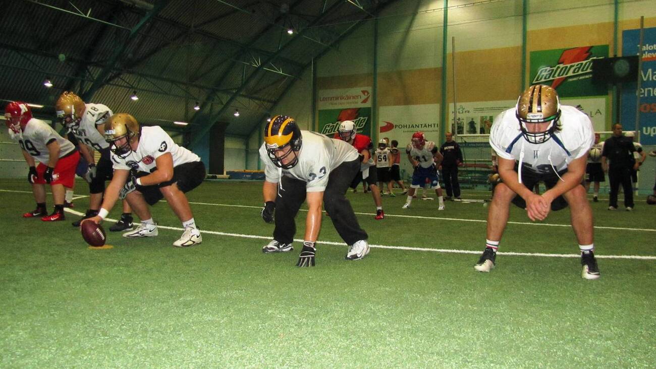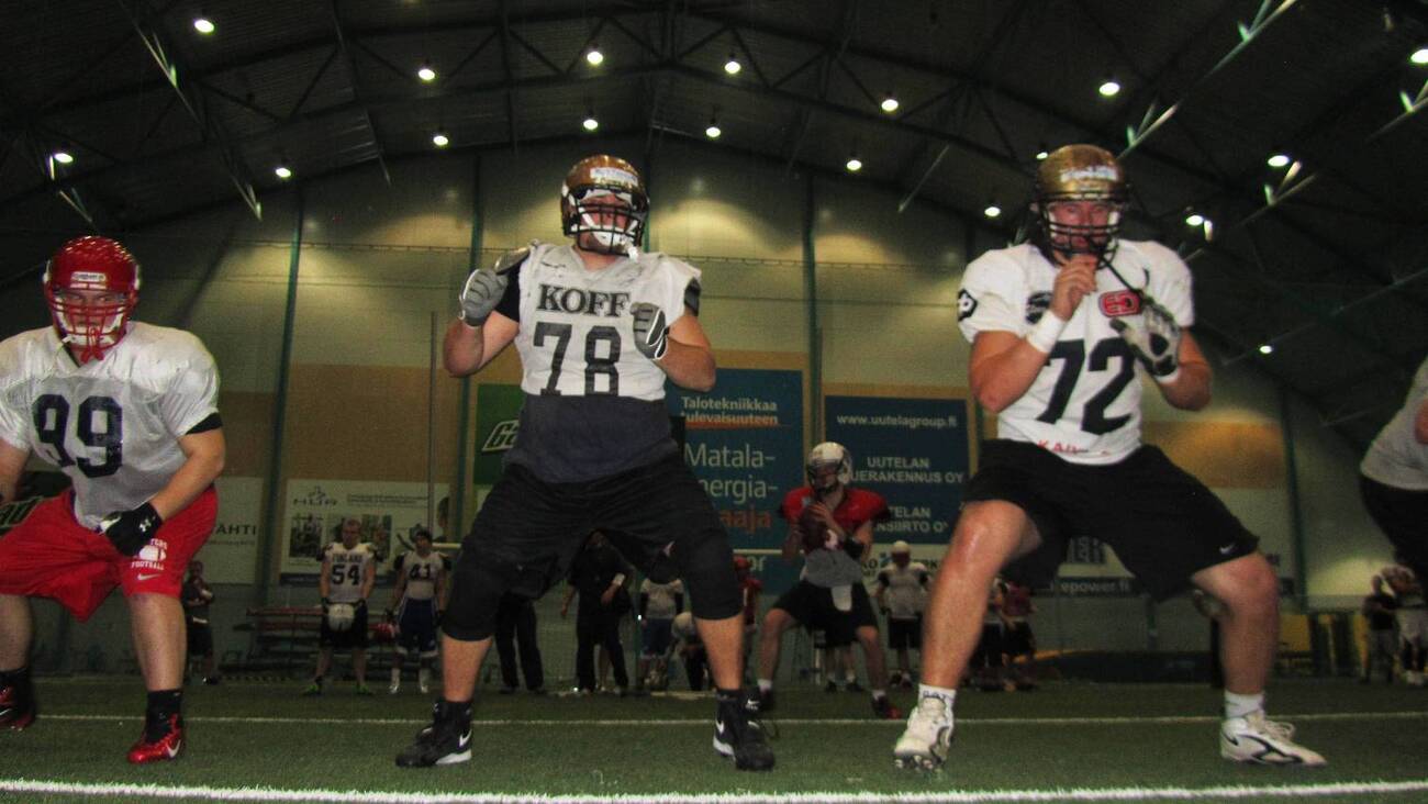 Suomi isännöi lauantaina Ruotsia perinteisessä syysmaaottelussa nuorella joukkueella. Vuosi sitten Suomi katkaisi seitsemän ottelun tappioputkensa länsinaapuria vastaan ja nappasi Tukholmassa pelatusta ottelusta 35-34 -voiton. - Joukkue on nuori, keski-ikä on 24 vuotta. Meillä on uusi sukupolvi pelaajia miesten maajoukkueessa. Hyökkäyksen puolella nuoret pelinrakentajamme, laitahyökkääjät ja keskushyökkääjät astuivat esiin jo viime vuonna. Miro Kadmiry ja Joonas Andersson ovat taitavia pelinrakentajia, päävalmentaja Tuomas Heikkinen kertoo joukkueestaan. Lähes kaikki Suomen joukkueen pelaajat pelasivat kuluneella kaudella Vaahteraliigassa. Ainoat poikkeukset ovat hyökkäyksen linjamiehet Iiro Luoto (Calanda Broncos, Sveitsi) ja Sami Rantanen (Nokian Ghosthunters, ykkösdivisioona). Tampereen Saintsin takamies Matti Airaksinen ponnisti maajoukkueeseen kakkosdivisioonasta. - Erityisesti puolustuksen linjassa muutos verrattuna esimerkiksi koko menneeseen vuosikymmeneen on valtava. Atleettisen ryhmän keski-ikä on 21,7 vuotta, keskipituus 192 cm ja keskipaino 110 kg. On hienoa saada tuollainen ryhmä nyt kansainvälisen tason tulikokeeseen. Hyökkäyslinjassa tapahtui pari harmittavaa poisjääntiä, mutta aloittava linja on vahva. Linebacker-ryhmä on tutun vahva ja syvyyttäkin alkaa olla, puolustuksen takakenttä on sekoitus nuoruutta ja kokemusta. Akseli Olin (TAFT) vakuutti potkukunnollaan leirillä. - Tämän päivän maajoukkuepelaajat ovat kaikkiaan upeata porukkaa, rauhallisia hyvin käyttäytyviä urheilijoita jotka osaavat kuitenkin pelata lajia kovalla itseluottamuksella ja intensiteetillä. Joukossa on sekä pitkään tiedettyjä nuoria ja kokeneempia pelimiehiä että jenkkifutista vähän aikaa pelanneita huippulupauksia joiden uskon pystyvän nousemaan kansainväliselle pelin tasolle lyhyessä ajassa. Maajoukkue valmistautui maaotteluun viikonloppuna Pajulahdessa. - Leiri oli intensiivinen ja tehokas. Kaikki treenit pidettiin Pajulahden jalkapallohallissa mikä poisti sääongelmat. Pajulahden opisto on kaikkiaan hyvä paikka pitää leirejä. Joukkue on koko ajan kasassa, ruokailut,kokoustilat ja majoitukset kunnossa ja näin aikataulut hallinnassa. Filmien käyttö valmennuksessa on tänä vuonna saatu aivan uudelle tasolle, kiitos tästä leirin osalta kaikki treenit kuvanneille Andy Bezairelle ja Olli Jussilalle sekä koko valmistautumisen ajalta modernille tekniikalle. Samoin kiitos joukkueenjohtaja Päivi Korelinille ja huoltaja Sami Pesoselle valtavasta työpanoksesta. Santeri Supi oli leirillä auttamassa scout-pelinrakentajana ja teki siinä roolissa ison palveluksen, Heikkinen kiittelee. - Valmentajisto oli tehnyt etukäteen paljon valmistavaa työtä, ja sen kautta päästiin harjoittelemaan tähän otteluun valitut asiat nopealla tehokkaalla tempolla, pelaajisto oli tehnyt pelikirja- ja filmikotiläksynsä hyvin. Toimintamallin muuttaminen pelaajiston etukäteen aiempaa tarkempaan valitsemiseen ja etukäteen valmentamiseen perustuvaksi on käsitykseni mukaan tehostanut ajankäyttöä lyhyillä leireillä selkeästi. Kiitos erityisesti hyökkäyksen koordinaattori Kim Wikströmille, joka on tehnyt todella ison urakan hyökkäyksen rakentamisessa. Ruotsi-ottelu on luonnollisesti vain välietappi matkalla kohti vuoden 2014 EM-kisoja. - Projekti 2014 jatkuu ottelun jälkeen talven fysiikkaleireillä. Euroopan huipputasolle on matkaa, mutta se on käsitykseni mukaan lyhentynyt edellisistä EM-kisoista. On ilahduttavaa huomata, että entistä useammissa seuroissa on selkeästi alettu korostamaan fysiikkaharjoittelun ja perustaitojen hiomisen merkitystä, tämän huomaa maajoukkueryhmän yleisen urheilullisuuden ja peruspelaamisen tason nousuna. Suomi ja Ruotsi ovat kohdanneet vuosien saatossa yhteensä 16 kertaa. Voitot ovat tasan 8-8. Suomi-Ruotsi miesten maaottelu Sonera Stadiumilla Helsingissä lauantaina kello 13.30. Naisten ottelu alkaa kello 11. Suomen joukkue: Version:1.0 StartHTML:0000000155 EndHTML:0000094797 StartFragment:0000000477 EndFragment:0000094780 | # | Sukunimi | Etunimi | Pelipaikka | Ikä | Pituus | Paino | Joukkue | | 1 | Olin | Akseli | K/P | 20 | 186 | 85 | TAFT | | 2 | Vennelä | Seikko | DB | 28 | 185 | 88 | Trojans | | 3 | Evwaraye | Efe | LB | 27 | 188 | 120 | Wolverines | | 5 | Roiko | Niko | DB | 20 | 178 | 80 | Butchers | | 7 | Kadmiry | Miro | QB | 21 | 180 | 82 | TAFT | | 8 | Andersson | Joonas | QB | 22 | 181 | 83 | Trojans | | 11 | Jussila | Henri | RB | 20 | 176 | 78 | Roosters | | 12 | Mankki | Tuomas | WR | 21 | 175 | 80 | Wolverines | | 21 | Leinonen | Tuomas | CB | 33 | 178 | 81 | Crocodiles | | 22 | Haukkamaa | Toni | CB | 37 | 175 | 80 | Butchers | | 25 | Kelo | Aku-Teppo | CB | 21 | 182 | 80 | Roosters | | 30 | Wirén | Aleksi | CB | 27 | 175 | 80 | TAFT | | 32 | Suojanen | Ville-Valtteri | DB | 20 | 188 | 85 | Jaguaarit | | 34 | Airaksinen | Matti | DB | 21 | 175 | 92 | Saints | | 35 | Järviö | Ville | RB/LB | 24 | 171 | 87 | Crocodiles | | 36 | Kuronen | Alexander | RB | 22 | 174 | 82 | Roosters | | 40 | Pasanen | Kimmo | DB | 23 | 185 | 85 | Jaguaarit | | 42 | Ahila | Perttu | WR | 22 | 185 | 87 | Jaguaarit | | 43 | Äyräväinen | Santtu | LB | 28 | 191 | 108 | Butchers | | 44 | da Silva | Kalle | LB | 30 | 178 | 100 | Wolverines | | 45 | Sjöblom | Aarno | LB | 37 | 191 | 104 | Wolverines | | 47 | Pennanen | Niko | LB/DB | 21 | 178 | 95 | Butchers | | 50 | Luoto | Iiro | OL | 28 | 195 | 120 | Broncos (CH) | | 51 | Tanskanen | Ville | DL | 19 | 192 | 103 | Roosters | | 54 | Saari | Anssi | LB | 23 | 185 | 98 | Wolverines | | 55 | Raatikainen | Joonas | LB/DL | 22 | 185 | 96 | Jaguaarit | | 56 | Kontiainen | Tero | LB | 25 | 178 | 120 | Butchers | | 65 | Pennanen | Tomi | OL | 27 | 185 | 125 | Wolverines | | 71 | Jääskeläinen | Tapio | OL | 29 | 187 | 120 | TAFT | | 72 | Rantanen | Sami | OL | 26 | 197 | 120 | Ghosthunters | | 73 | Lautala | Pasi | OL | 32 | 192 | 135 | Butchers | | 77 | Kaasalaine