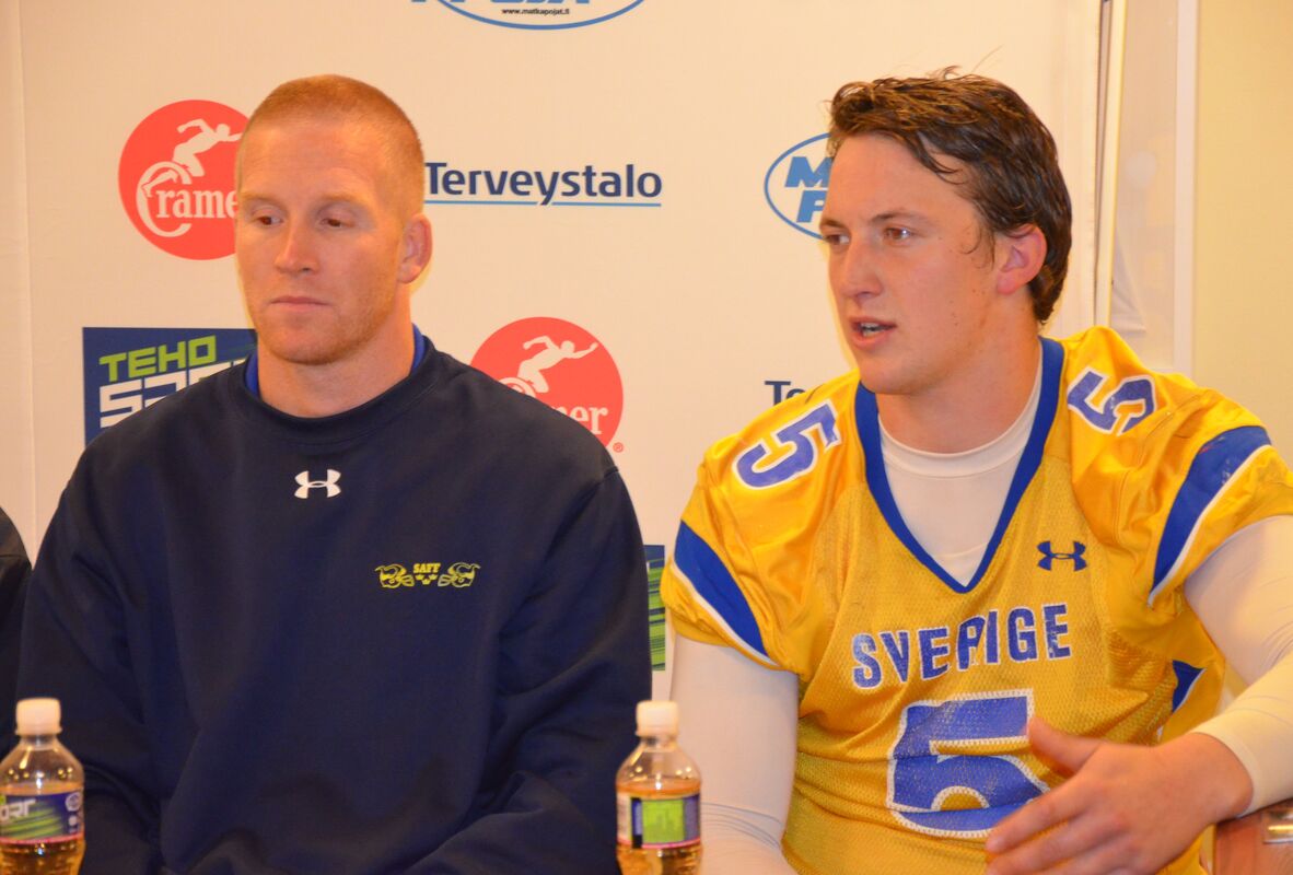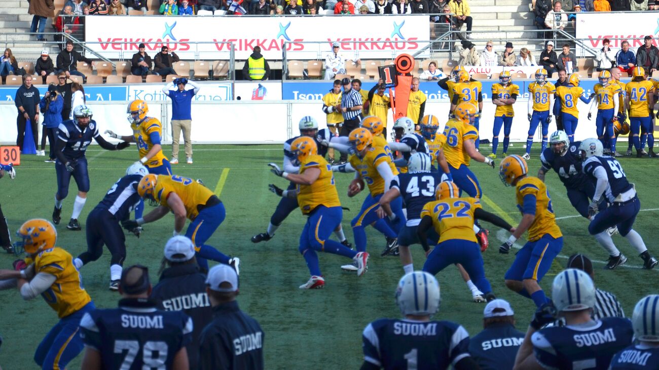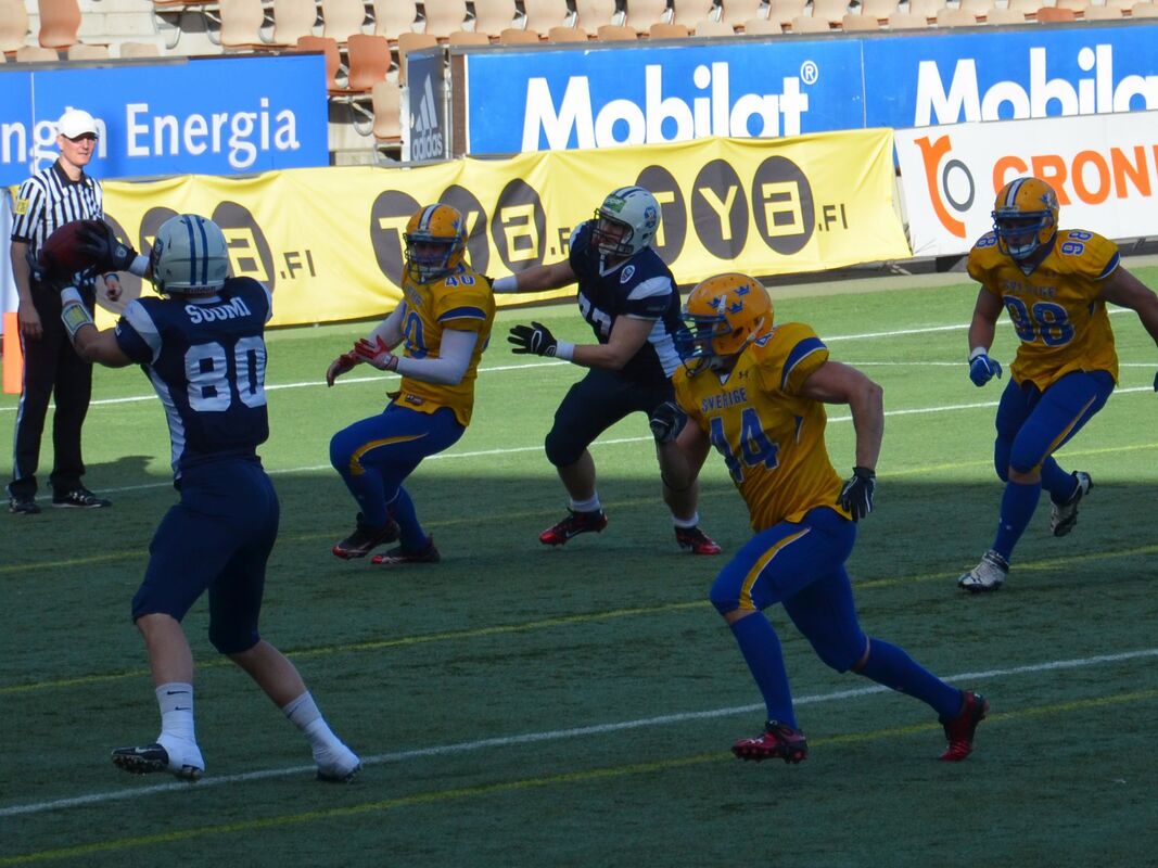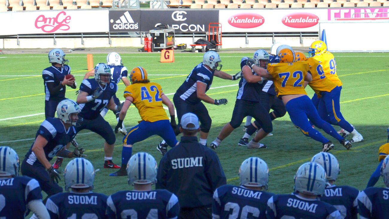 Suomen miehet taipuivat 3-20. Suomen miesten maajoukkue joutui taipumaan ottelussa, joka tasaisen alun jälkeen kääntyi Ruotsille. Vierasjoukkue voitti ottelun 20-3 (7-3). Suomen hyökkäys ei lähtenyt missään vaiheessa täysillä käyntiin, ja eteni koko ottelussa vain 113 jaardia. Suomella oli mahdollisuutensa ottelun ensimmäisellä neljänneksellä kasvattaa johtoaan, mutta Akseli Olinin kolmesta pitkästä potkumaaliyrityksestä onnistui vain yksi. - Jos olisimme alussa käyttäneet mahdollisuutemme, niin olisimme taistelleet voitosta loppuun asti, päävalmentaja Tuomas Heikkinen sanoi. - Hyökkäystä emme saaneet aukeamaan. Se oli nihkeätä alusta asti. Ottelun edetessä Ruotsin pelinrakentaja Anders Hermadsson otti pelin haltuunsa. Isokokoinen (196 cm / 110 kg) pelinrakentaja juoksi itse tärkeitä jaardeja joukkueelleen ja piti pelejä käynnissä hyvällä liikkeellään. Koko ottelussa hän juoksi 14 yrityksellä 73 jaardia ja heitti 115 jaardia ja kolme touchdownia. Hermodsson palkittiin ottelun parhaana pelaajana. - Hän on lahjakas urheilija, ja hänellä on iso rooli Ruotsin joukkueessa, Suomen parhaana pelaajana palkittu tukimies Joonas Raatikainen totesi. Ruotsin päävalmentaja Håkan Eriksson kehui puolustuksensa panosta. - Alussa jouduimme pallonmenetysten jälkeen puolustamaan lyhyttä kenttää. Puolustuksemme pelasi hyvin ja pakotti Suomen potkumaaliyrityksiin. Paitsion takia peruttu onnistunut potkumaali jonka uusintayritys epäonnistui toi energiaa meille. Suomen ykkösetenijä oli keskushyökkääjä Henri Jussila 49 jaardillaan. Pelinrakentaja Miro Kadmiry heitti 15 kertaa, joista onnistui seitsemän. Heittojaardeja kertyi 59. Heikkinen oli ottelun jälkeen pettynyt. - Ruotsi oli selkeästi parempi. Viime vuoden 35 tehtyä pistettä muuttui kolmeksi. Nyt on peiliin katsomisen paikka. Teimme valmistautumiseen enemmän töitä kuin koskaan minun aikanani, pitää tutkia menikö se ylivalmistautumisen puolelle, Heikkinen puntaroi. Heikkinen nosti joukkueen nuoremman kaartin onnistujiksi. - Etenkin puolustuksen linjassa meillä on nousemassa seuraavia kovia nimiä. Joonas (Raatikainen) paikkasi loukkaantuneen Efe Evwarayen hyvin. Voittonsa myötä Ruotsi siirtyi otteluvoittojen määrässä Suomen ohi. 17 kohtaamisesta yhdeksän on päättynyt Ruotsin voittoon. Ottelua seurasi Helsingin Sonera Stadiumilla 1 693 katsojaa. Ottelun tilastot: |