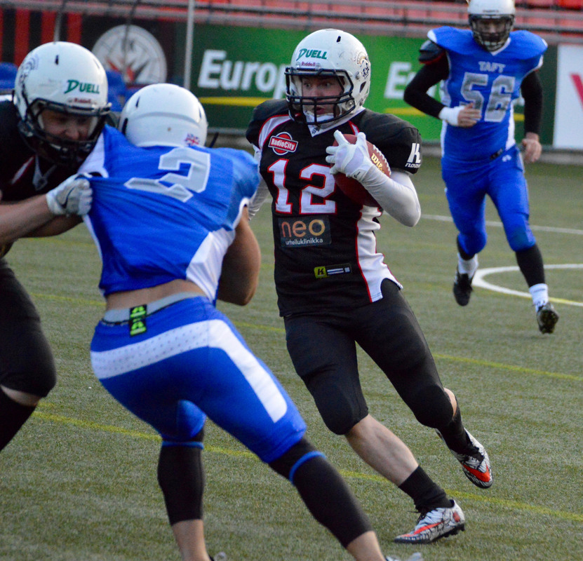 Mitkä ovat sarjan kovimmat joukkueet ja miksi? Jokainen joukkue on pystyttävä voittamaan, mutta alustavasti kovimmilta näyttävät Rusko Mayhem ja paikallisvastustaja Hyvinkää Falcons. Joukkueilla on ennakkotietojen mukaan isot rosterit, jotka kestää hyvin myös poissaoloja ja loukkaantumisia. Bulldogs pystyy kyllä haastamaan kaikki joukkueet. Trojansin rosterista on vaikea tässä vaiheessa sanoa vielä yhtään mitään. Turku Trojansvastaajana päävalmentaja Otto Junttila Mikä on joukkueenne tavoite? Tavoite on pelata hyvää futista ja mennä eteenpäin joukkueena läpi kauden. Meillä on tietyt kivijalat, joille uskon pelien voittamisen rakentuvan ja ne asettavat suuntaviivat treenaamiselle, pelisysteemeille sekä pelien kutsumiselle matseissa. Tavoitteet on mielekästä asettaa sellaisiin asioihin jotka ovat saavutettavissa omalla työllä muiden tekemisestä riippumatta. Kun keskitymme tekemään oikeita asioita, tulostaulu pitää kyllä itsestään huolen. Kuvaile kolmella adjektiivilla joukkuettanne. Nopea, iskevä, innostava Minkälaista hyökkäystä pelaatte? Hyökkäyksessä pyrimme nopeaan ja räjähtävään peliin. Meidän vahvuutena on nopeita ja järkeviä ratkaisuja tekevä pelinrakentaja, mutta joukkueesta löytyy myös todella hyviä keskushyökkääjiä Eemeli Valkamosta lähtien, jotka pystyvät ottamaan isoja pelejä. Eemelin lisäksi Lauri Teittinen sekä Marcos Mikkonen tulevat varmasti ennakkoluulottomasti lunastamaan paikkansa. Laitahyökkääjäkaartissa on rutkasti liigakokemusta, kuten esimerkiksi Mikko Rannikko, Joon Hedman sekä Kim Madsen. Lisäksi mukana on uusia tuttavuuksia, jotka tulevat nousemaan esiin kauden aikana. Mikä on puolustuksenne vahvuus? Puolustuksen vahvuutena ovat kokeneet konkarit avainpelipaikoilla. Varsinkin takakentällä ja tukimiehissä on kokemusta. Esimerkiksi Antero Kivinen, Olli Jokela ja Simo Åkerberg tekevät nopeita lukuja ja taklaavat pallonkantajia aloituslinjan tasalla. Nimeä kolme avainpelaajaa ja kerro miksi juuri he ovat avainpelaajia. QB Teemu Thorström. Mikäli Teemu ei olisi pelinrakentajanamme, pelaisimme hyvin erinäköistä futista hyökkäyksessä tänä kesänä. Teemulla on valtava kokemus takana ja hän on ehdottomasti niitä pelaajia, jotka nostavat omilla yksilösuorituksillaan koko joukkueen tasoa. DB Kalle Kilickesen. Kalle on voimakas hahmo sekä pelikentällä että sen ulkopuolella. Hän on Teemun tavoin erittäin pitkän kokemuksen omaava pelaaja, joka pelaa aina kovaa ja periksiantamattomasti loppuun saakka. Kalle on erittäin tärkeä osa sekä puolustusta että koko joukkuetta. DB Orelso Vitam. Orelso on tullut talvikaudella mukaan joukkueeseen ja on erittäin näkyvä ja kuuluva pelaaja kentällä. Orelso on nopea pelaaja, joka pelaa kovalla itseluottamuksella. Olemme asettaneet hänet sellaiseen asetelmaan, jossa hänellä on mahdollisuus tehdä todella isoja pelejä. Odotan hänen lunastavan nämä odotukset isosti. Mitkä ovat sarjan kovimmat joukkueet ja miksi? Sipoo Bulldogsilta odotetaan paljon viime vuoden finalistina. Odotan heiltä nopeaa joukkuetta, jossa on hyvän rungon päälle mukana muutama kovanluokan pelaaja. Rovaniemi Nordmen on odotettavasti fyysisesti kova joukkue Pinedan johdolla. Rusko Mayhem jatkaa siitä, mihin viime syksynä jäi ja on saanut kasattua varsin vakuuttavat linjat itselleen. Vantaan TAFTvastaajana päävalmentaja Antti Hurme: Mikä on joukkueenne tavoite? TAFT:n tavoite tällä kaudella on opetella voittamaan jälleen. Meillä on viimeksi ollut voitokas kausi aika monta vuotta sitten ja viime kausi oli pohjanoteeraus. Tänä vuonna asiat on tehty huomattavasti eri tavalla muutamaan edelliseen vuoteen verrattuna ja toivottavasti tämä tuottaa voittoja kesän peleissä. Kuvaile kolmella adjektiivilla joukkuettanne. Nopea, Nuori ja Nälkäinen. Taft on aina tunnettu kohtuu pienistä mutta liikkuvista pelaajista, niitä on porukassa tänäkin vuonna. Omista junnuista koottu porukka on keskimäärin iältään nuori, mutta pelivuosia on monella takana jo paljon. Porukassa on muutama jo U11 ikäisenä jenkkifutiksen TAFTssa aloittanut pelaaja. Nälkäinen on vähän tuohon ensimmäiseen kysymykseen liittyen. Voittamista on tullut junioreissa joka vuosi, mutta edari tasolla voittamisen makuun pääsemiseen on todellinen nälkä. Minkälaista hyökkäystä pelaatte? Jos nyt jenkkifutistermein sanotaan niin West Coast ja Power Run. Peruspakettina on I-muodostelma ja sen perustana on oikea todellinen käsi maassa pelaava TE sekä blokkaava RB. I-muodosta vaihdetaan motioneiden ja shiftien kautta mitä erilaisimpiin muotoihin. Kauden kuluessa tullaan myös näkemään muutamia ei-niin-traditionaalisia muodostelmia ja tapoja edetä pallon kanssa. Mikä on puolustuksenne vahvuus? Puolustuksen vahvuus löytyy LB-osastolta. Meillä on neljä todella hyvää LB:tä ja puolustus on rakennettu ottamaan heistä kaikki irti. Puolustuksen ideana on antaa painetta QB:lle ja pakottaa hyökkäys virheisiin. Nimeä kolme avainpelaajaa ja kerro miksi juuri he ovat avainpelaajia. Jere Salejärvi, TE – Jere on nyt 19-vuotias ja aloittaa 9 kautensa TAFT:ssa. Hän on ehkä lahjakkain todellinen TE mitä itse olen nähnyt sitten Klaus Alisen (Klasun kanssa tuli aikoinaan pelattua junnumaajoukkueessa yhdessä ja liigassa vastakkain). Nykypäivän jenkkifutiksessa monipuolinen TE on aika harvinaista, usein he osaavat joko ottaa palloja kiinni tai blokata, Jere tekee molemmat korkealla tasolla. Jasper Lindqvist, LB – Jape on 17 vuoden iästään huolimatta ollut U19-maajoukkueen mukana jo pari vuotta. Hän on todella urheilullinen, liikkuva, voimakas (viime viikonloppuna SM-pronssia painonnostossa) ja rämäpäinen. Hän vetää aina täysillä ja suorastaan rakastaa kontaktia. Tämä on Japen ensimmäinen kausi miesten tasolla ja uskon, että tämän kauden jälkeen hänestä puhutaan entistä enemmän tulevaisuuden johtavana suomalaisena LB:nä. Jape lähtee loppukesäs