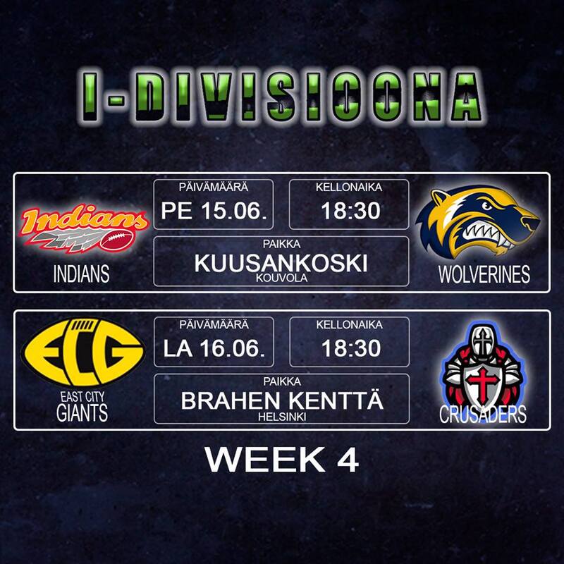 Ristiretkeläiset lähtevät haastamaan jättiläisiä HelsinkiinNeljännen peliviikon toinen kamppailu käydään lauantaina Brahen kentällä, kun kotijoukkue East City Giants haluaa päästä voittoputkeen United Newland Crusadersin kustannuksella. Molemmat joukkueet pelasivat edelliskierroksella kotonaan – jättiläisille voitto 49–24, kun taas ristiretkeläisten kotidebyytin Hangossa pilannut Eagles oli parempi lukemin 15–37. Kolmannen peliviikon arvokkaimmaksi pelaajaksi palkittu Jabari Harris joukkoineen pyrkii pallon saadessaan jatkamaan siitä, mihin edelliskierroksella jäivät. Tarkan heittokäden ja räjähtävät jalat omaava Harris on vaikea pideltävä, mistä kielivät edelliskierroksen henkilökohtaiset lähes 500 jaardia. Giantsin hyökkäyksen linja pitää huolen siitä, että pelinrakentajalla on riittävästi aikaa valita liikkeet ja toteuttaa ne. Crusaders-puolustus oli viime lauantaina vaikeuksissa kotkalaisten hyökkäyksen kanssa. Eaglesin linjamiehitys kykeni pitämään Richard Heleniuksen ja Juho Jäntin kurissa eikä kotkien pelinrakentajalle päästy antamaan riittävästi painetta. Taklausten vieminen perille asti on varmasti yksi kohta, johon ristiretkeläiset hakevat lauantain kamppailussa parannusta. Viikonloppuna ajoittain mallikkaasti rullanneen Crusaders-hyökkäyksen, Sebastian Berndtssonin johdolla, on löydettävä keinot murtautua täksi kaudeksi entisestään vahvistuneen Giants-puolustuksen ohi. Eagles onnistui pitämään keskushyökkääjä Ryan Tuiasoan hyvin taskussaan eikä mies päässyt samanlaiseen lentoon kuin viikkoa aikaisemmin. Kaiken kentällä itsestään antavan Tuiasoan on saatava riittävästi tukea ja jaettava vastuuta, jotta tukimies Petteri Blomqvist ja muut jättiläismäiset puolustajat eivät pääse samanlaisiin taklaustalkoisiin kuin Indiansia vastaan nähtiin.