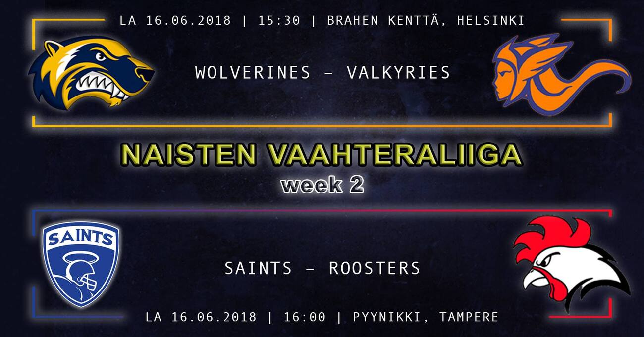 Valkyries matkustaa Wolverinesin vieraaksi ja Saints isännöi Roostersia. Naisten Vaahteraliiga jatkuu tulevana lauantaina kahdella ottelulla, kun avauskierroksen voittajat ja tappion kokeneet joukkueet kohtaavat keskenään toisensa. Viikonlopun jälkeen yhden joukkueen tappiosarake näyttää nollaa ja jonkun toisen kahta – tai kääntäen sanottuna, kahta voittoa ja tyhjää voittosaraketta. Avauskierroksella hyökkäyksessä loistaneet tutkaparit vastakkainBrahen kentällä on odotettavissa tiukka kamppailu, kun viime kauden välierässä kohdanneet Wolverines ja Valkyries selvittelevät paremmuuttaan. Kyseisessä pelissä, vielä puoliajalla ottelua johtaneet valkyyrit joutuivat taipumaan tiukkaakin tiukemmassa ottelussa lukemin 7–6. Pietarilaisten pronssiin päättynyt kausi, oli joukkueelle lopulta hienoinen pettymys ja tuosta sisuuntuneena voidaan odottaa, että huomenna ilmassa on revanssihenkeä, kun pallo potkaistaan ilmoille kello 15.30 alkavassa kamppailussa. Wolverines otti avauskierroksella makean voiton Helsingin paikalliskamppailussa, kun Roosters kaatui viikon arvokkaimmaksi valitun, Sanni Seppälän, johdolla 20–8. Hieman huolimattomasti avauspuoliajalla palloa käsitellyt ahmahyökkäys osoitti maanantaina selkeän tason noston jälkimmäisellä puolikkaalla ja kykeni raapimaan voiton kukkolaumasta. Pelinrakentaja Minna Tiaisen ja Seppälän kemiat kohtasivat heti, mikä on ainoastaan positiivinen merkki ahmaleirissä. Väkevästi esiintyneen puolustuksen, joka pystyi pitämään Roosters-hyökkäyksen pois pahanteosta, antaa Wolverinesille hyvän pohjan lähteä rikkomaan Elena Proskurikovan organisoimaa hyökkäystä. Erityisesti fyysisyydestä tunnetut pietarilaiset kykenivät raapimaan arvokkaan vierasvoiton avauskierroksella sarjanousija Tampere Saintsista loppuhetkien maaleilla. Lukemiin 14–20 päättyneen ottelun hahmoksi nousi keskushyökkääjä Daria Briukhovetskaya, joka kirjasi ottelussa nimiinsä 14 pistettä (kaksi touchdownia ja kaksi lisäpistettä). Viime kauden etenijätilaston nimiinsä vienyt Briukhovetskaya ja pelinrakentaja Proskurikova muodostavat alati vaarallisen tandemin. Lauantaina onkin mielenkiintoista nähdä, millä eväillä tätä parivaljakkoa lähdetään Wolverines puolustuksessa pysäyttämään ja kumpi avauskierroksella onnistuneista tutkapareista, Tiainen-Seppälä vai Proskurikova-Briukhovetskaya, poistuu kentältä joukkueineen voittajana. Wolverinesin päävalmentaja Pekka Lamminsalo ennakoi ottelusta, historiaankin peilaten, tiukkaa. – Olemme pelanneet Pietaria vastaan kolmesti, joista kaksi on ratkennut kahdella ja yhdellä pisteellä. Avausottelussa Valkyries pelasi omaa option-hyökkäystä hyvin ja sen pysäyttämisen Lamminsalo nostaa ottelun avaimeksi kotijoukkueen näkökulmasta. Valmentaja ennakoi heiton olevan lauantaina ahmojen ase – päästiväthän pietarilaiset Saintsia vastaan molemmat maalinsa heittopeleistä. Lyhyt viikko ja palautumisaika peliin ovat haitanneet lauantain isäntien harjoitteluintensiteettiä, mutta Lamminsalo tietää joukkueensa olevan valmis huomiseen otteluun. Päävalmentaja toivoo ratkaisijoiden löytymistä laajemmalta rintamalta lauantaina. – Roosters-pelissä meillä nousi isoon rooliin etenkin keskushyökkääjä Tytti Kuusinen (12 kantoa, joilla 70 jaardia + touchdown) ja laitahyökkääjä Sanni Seppälä. Tähän peliin pyrimme avaamaan ratkaisupaikkoja myös toisillekin pelaajillemme