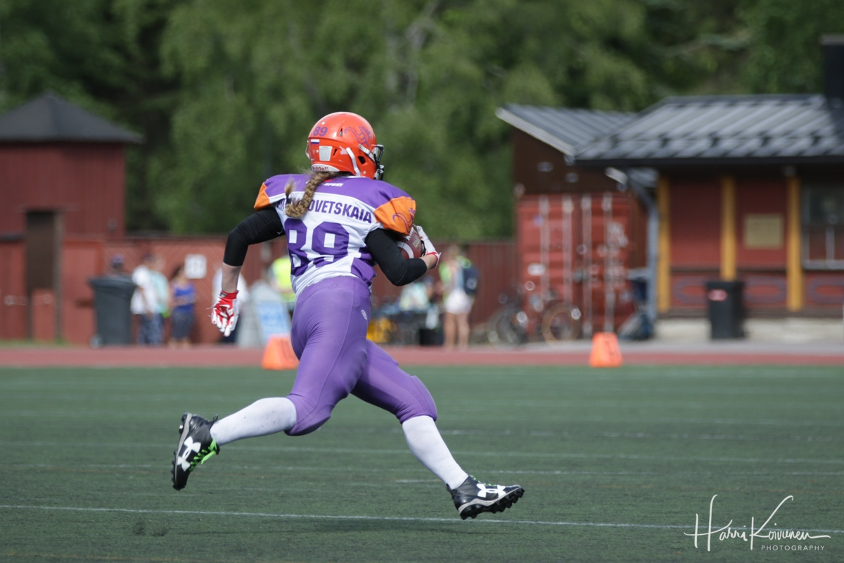 Valkyriesin keskushyökkääjä vastasi joukkueensa jokaisesta maalista lauantaina. Pietari Valkyriesia edustava Briukhovetskaya on valittu Naisten Vaahteraliigan toisen kierroksen arvokkaimmaksi pelaajaksi. Vaikka Valkyries hävisi viikonloppuna oman ottelunsa Helsinki Wolverinesin vieraana lukemin 28–20, ei Briukhovetskayan suoritusta voitu valintaa tehdessä sivuuttaa. Valinta on siinä mielessä poikkeuksellinen, että kierroksen arvokkain pelaaja valitaan lähes poikkeuksetta kierroksella voittaneesta joukkueesta. Vuosi sitten liigan etenijätilaston nimiinsä vienyt ja all stariin valitun keskushyökkääjän panos Brahen kentällä oli väkevä. Kaikki kolme joukkueensa touchdownia nimiinsä lauantaina kirjannut venäläinen on osoittanut alkukaudella olevansa jälleen Valkyriesin hyökkäyksen ehdoton kulmakivi. Brahen kentällä yhteensä 259 jaardia, joista 150 juoksu- ja 109 heittopelien kautta, tilastoineen Briukhovetskayan jokainen tehty touchdown lähti omalta kenttäpuolikkaalta – pisimmälle pistesuoritukselle mittaa kertyi 74 jaardia. Alkukaudella hyvän kemian pelinrakentaja Elena Proskurikovan kanssa löytänyt Briukhovetskaya on kahdessa pelaamassaan pelissä onnistunut maalinteossa jo viidesti. |