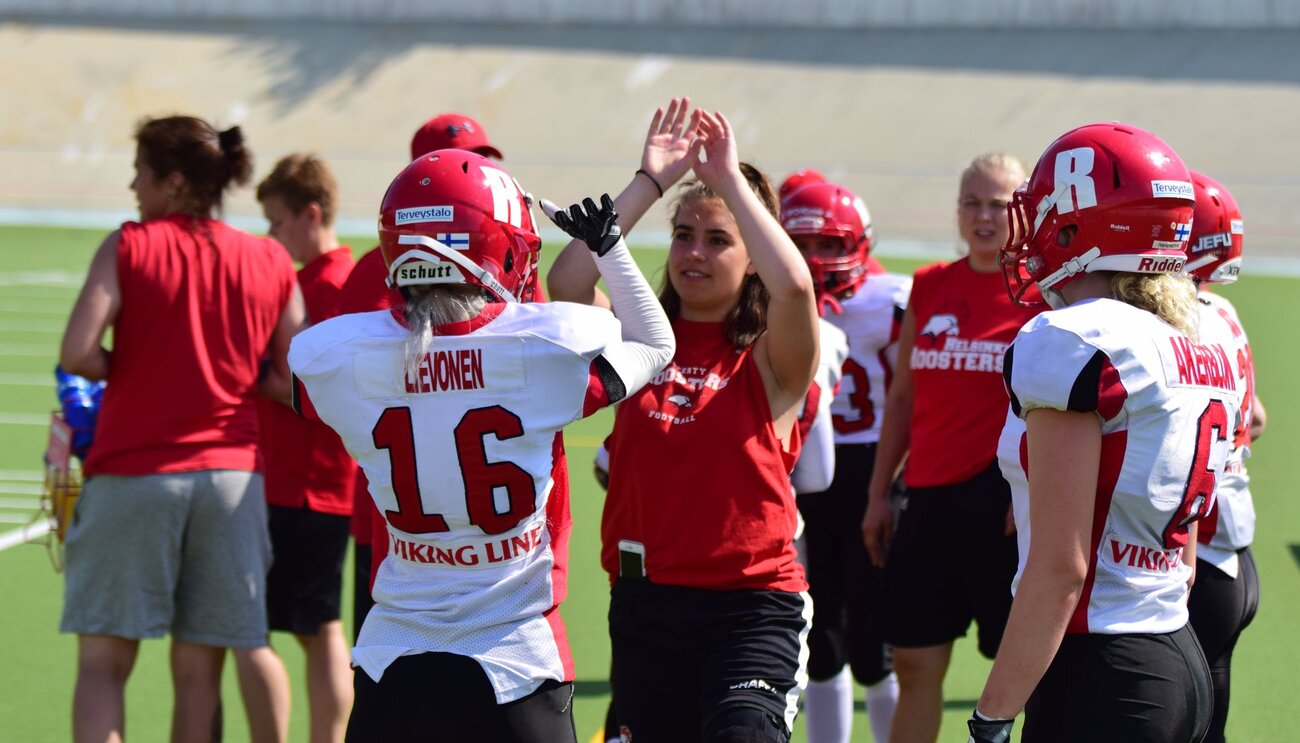 Helsinkiläisjoukkueet Wolverines ja Roosters nollasivat vastustajansa. Naisten Vaahteraliigan kuudes ja päättävä kierros pelattiin pois alta lauantaina Helsingissä kahden ottelun voimin. Kotijoukkueet eivät antaneet jaardiakaan ilmaiseksi pääkaupungissa vierailleille Saintsille ja Valkyriesille vaan jättivät heidät tylysti nollille. Roosters – Valkyries 40–0 (20–0)Runkosarjan viimeinen ottelu Roosters Womenin ja St. Petersburg Valkyriesin välillä päättyi helsinkiläisjoukkueen kauden suurinumeroisimpaan voittoon 40–0. Joukkueet kohtaavat vielä kerran tulevassa välierässä ja ottelu antoi kotijoukkueelle hyvät lähtötunnelmat valmistautumiseen. Roosters-päävalmentaja Heli Harjanne oli iloinen joukkueen nousujohteisesta esiintymisestä ja uusien pelaajien esiin nousemisesta hyökkäyksessä. Puolustuksen nollapeli oli kauden ensimmäinen, tosin Harjanne pisti merkille ehkä vaarallisimman pietarilaispelaajan Daria Briukhovetskayan puuttumisen kokoonpanosta. – Hyvä kenraaliharjoitus välierään, saatiin uusia pallonkatajia, enemmän aseita käytössä ja ollaan kehitytty koko kausi eteenpäin. Teemu (Kuusisto) on tehnyt hienoa työtä hyökkäyksen kanssa ja koko ajan kasvetaan ja mennään kovempaa. Puolustus pelasi nollapelin ja se on aina upee suoritus. Tietysti odotetaan, että numero 89 palaa kentälle välieriin Valkyriesin hyökkäykseen ja pitää olla hereillä siihenkin. Hyvä nousujohteinen runkosarja ja siihen me lähdetään tekemään jatkumoa välieriin. Valkyriesin päävalmentaja Ilya Kravtsov ei niinkään harmitellut ottelun loppunumeroita, vaan joukkueen kokonaissuoritusta lauantai-iltapäivässä. – Tässä vaiheessa kautta voi tietenkin kokeilla erilaisia asioita ja muodostelmia. Mutta ennen ottelua sanoin että tärkein asia otteluun on säilyttää intensiteetti ja päästä suorituksissa tasolle millä haluamme olla välierissä. Ja mielestäni, välittämättä tuloksesta tai peleistä joita teimme tai emme tehneet, me emme saavuttaneet tärkeintä tavoitettamme. Me emme säilyttäneet intensiteettiämme, emme pelanneet niin keskittyneinä kuin haluaisimme välierissä, emmekä saavuttaneet suoritustasoamme. Se oli meidän suurin epäonnistumisemme tänään, ei lopputulos vaan ettemme pelanneet niin hyvin kuin olisimme voineet pelata. – Suurin haasteemme ennen välierää on päästä mentaalisesti oikealle tasolle ja pelata jalkapalloa niin hyvin kuin mahdollista. Tänään me emme pelanneet parasta jalkapalloamme ja meillä on kaksi viikkoa aikaa sen korjaamiseen, totesi Kravtsov painokkaasti kamppailun päätyttyä Roosters vei ensimmäisen hyökkäysvuoronsa maaliin, mutta sen jälkeen Valkyriesin puolustus sai pidettyä helsinkiläiset poissa maalialueeltaan toisen neljänneksen loppuhetkille saakka. Kahden nopean maalin jälkeen väliajalle joukkueet lähtivät lukemissa 20–0. Toisella puoliajalla Roosters sai vietyä viimeistä lukuun ottamatta kaikki hyökkäysvuoronsa maaliin, puolustuksen pysäyttäessä Valkyriesin hyökkäyksen. Viimeisen hyökkäysvuoronsa aikana kulutti Roosters-hyökkäys pelivälinettä eteenpäin liikuttaen pelikellon loppuun. Lähde: Roosters Women Pisteet: Roosters: Mari Jääskelä 18, Katri Ronni 6, Isabella Lievonen 6, Hilkka Rahkonen 6, Janna-Jemina Seiles 2, Valkyries oma maali 2 Valkyries: –