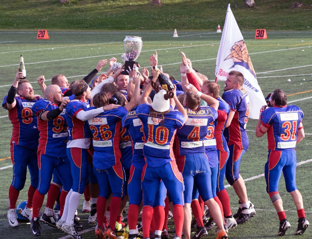 III-divisioonan mestaruudesta eli Tinamaljan voitosta pelattiin lauantaina 18.8. Rovaniemellä Susivoudin kentällä. Vastakkain olivat runkosarjan puhtaalla pelillä voittanut Rovaniemi Nordmen ja Tampere Saintsin kakkosjoukkue Patriots. Patriots oli kukistanut välierässä Sipoo Bulldogsin 31 – 9. I neljänneksellä pelinrakentaja Ralf Pineda löysi heittopelillä laitahyökkääjä Alfonso Ikäheimon. Lisäpistepeli blokattiin. Nordmen johti 6-0. Nordmen sai hyökkäys sai tehdät töitä hartiavoimin läpi tasaisen ottelun. Patriots ei antanut mitään ilmaiseksi. Nordmenin puolustus pelasi kuitenkin tarkasti eikä päästänyt maalientekoon edes Tampereen kokenutta liigajyrää Matti Airaksista. Seuraava pistesuoritus tehtiin III neljänneksellä kun Hannes Harju teki 55-jaardisen maalin Pidedan heitosta. Kaksi lisäpistettä Nordmenille teki Eino Kalliomäki.14-0 Alfonso Ikäheimo teki toisen henkilökohtaisen maalinsa III neljänneksellä 45 jaardin heittopelistä. Tomi Väänen potkaisi lisäpisteen ja tilanteeksi 21-0 Nordmenille. Patriotsin pelinrakentaja Lari Siitonen viljeli heittopeliään laajalti, mutta ei tässä ottelussa saanut ratkaisevia onnistumisia. Pallo liikkuikin pääosin keskikentällä. Ottelun kulkua kuvaa hyvin, että ottelun turn overit tapahtuivat vasta loppuvaiheessa. Aleksi Statsevich peitti irtopallon lentopotkutilanteessa. Ottelun ensimmäinen turn over tapahtui vasta viimeisellä jaksolla, kun Nordmenin Petri Korhonen peitti rähmäyksen. Nordmenin valmentajina ovat toimineet Rafael Pineda ja Teemu Nätynki hitsasivat toimivan joukkueen, jossa oli muknan myös muutamia pelaajia Ruotsista Luleå Eskimosin riveistä. Rovaniemi Nordmenin puheenjohtaja Jani Alapalosaaren mukaan seura ei vielä sanoa varmuudella, että ottaako joukkue paikan ensi kaudeksi 2. divisioonasta. Amerikkalaisen jalkapallon erikoisseura Nordmen on perustettu vuonna 2013. Seuran toiminta on kasvanut vuosien varrella. Nordmenilla on myös 2. divisioonassa pelaava naisten joukkue ja lisäksi käynnissä Opetus- Kulttuuriministeriön tukemaa junioritoimintaa. Artikkeli ottelusta Lapin Kansassa