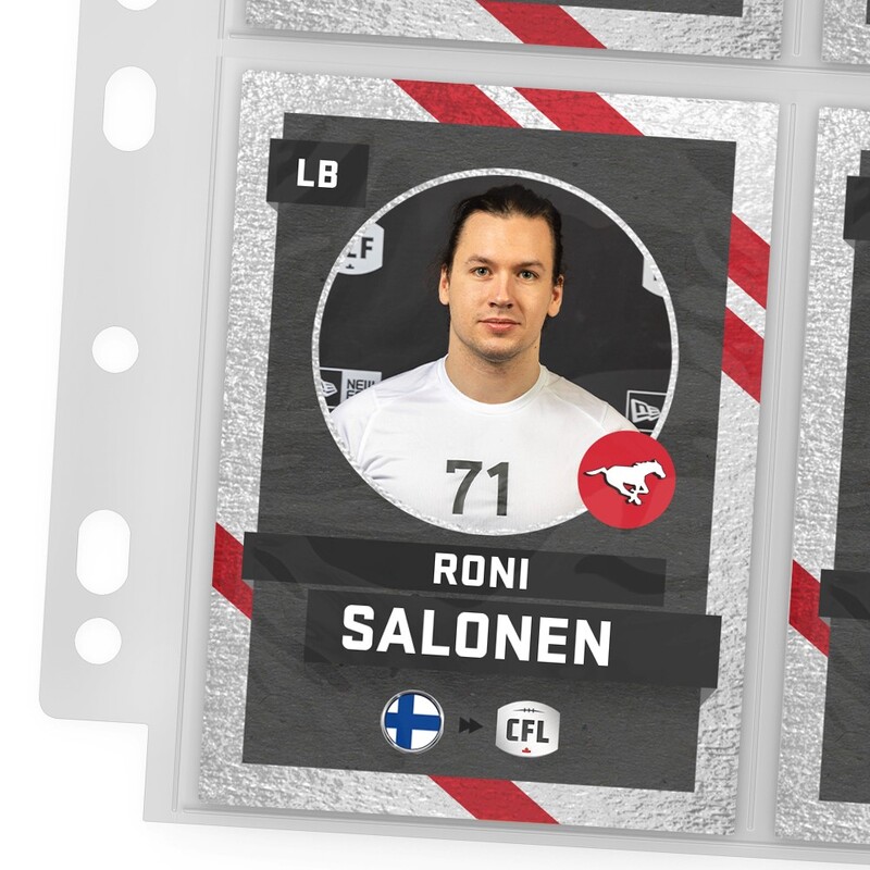 Torstai-iltana järjestetyssä CFL:n kansainvälisten pelaajien varaustilaisuudessa Roni Salosesta tuli ensimmäinen liigaan varattu suomalainen. Salosen oikeudet varasi hallitseva CFL mestari Calgary Stampeders. Salonen oli varauksesta tyytyväinen. ”Odotan innolla uusia haasteita mitä varaus tuo mukanaan. Calgaryn kanssa ollaan jo ensimmäiset viestit vaihdettu ja toukokuussa matkustan sitten CFL:n harjoitusleirille.” Harjoitusleirit käynnistyvät 15.5. ja kautta edeltävät harjoitusottelut 26.5. CFL:ssä pelataan isommalla kentällä, jossa joukkueilla on kerralla 12-pelaajaa. Pelissä on muutenkin hieman erilaiset säännöt, kun perinteisen neljän yrityksen sijaan joukkueella on vain 3 yritystä saada ensimmäiset yritykset. Saloselle peli ei ole marraskuussa Torontossa pidetyllä combinella nähtyä tutumpi, mutta hän suhtautuu tulevaan rennosti. ”Nyt täytyy alkaa opettelemaan 12-pelaajan palloa tosissaan. Combinessa sai hieman tuntumaa siihen miten sääntömuutokset muokkaavat peliä, joten ihan tyhjän päältä ei tarvitse lähteä opettelemaan. Salonen oli alunperin pelaamassa kautta Saksan liigan Braunschweigissa. Nyt ainakin toukokuussa majapaikka muuttuu Calgaryyn. ”Ei kai siinä muuta, kuin kamat kantoon ja seuraavaan kohteeseen”, totesi viime vuodet ulkomailla Itävallassa ja Saksassa pelannut Salonen. SAJL puheenjohtaja Roope Noronen: ”Isot onnittelut Ronille valinnasta. On hienoa että syksyllä alkanut yhteistyö CFL:n kanssa mahdollisti jo nyt yhdelle suomalaisella pelaajalle varauksen. Mutta myös muut liigan testeissä olleet suomalaiset esiintyivät edukseen ja pohjustivat tietä tuleville vuosille. Toivottavasti ensi vuonna saamme vielä lisää pelaajia yrittämään CFL:ään pääsyä.” Lisätietoja: