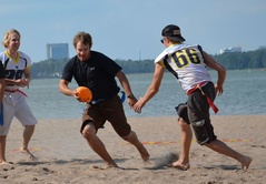 Jenkkifutista turvallisesti ja hauskalla tavalla rannalla. Säännöt ovat yksinkertaiset, tärkeintä että pallo lentää. Lippuvyöt voi korvata kosketuksella selkään.