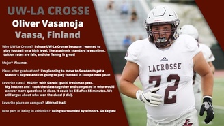 La Crosse, Wis. - UW-La Crosse Intercollegiate Athletics is featuring senior student-athletes from the fall who had their seasons canceled due to the COVID-19 public health threat. Our senior being recognized today is Oliver Vasanoja of Vaasa, Finland (Vasa Gymnasium) from the football team.