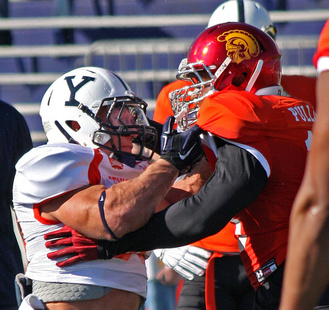 - Aloitin pelaamaan footballia heittelemällä palloa isän kanssa kun olin viisi tai kuusi. Kahdeksan vuotiaana aloitin lippupallon, josta siirryin kolmen kauden jälkeen tackle footballin pariin. Pelasin ensin linjapuolustajana ja 4. yrityksen keskushyökkääjänä. Joukkueemme ei lentopotkaissut, koska olimme pienikokoinen joukkue. Joten neljännellä yrityksellä sain tilaisuuden kantaa palloa.
