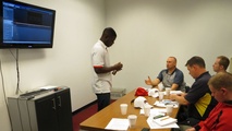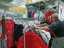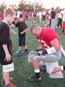 ULNV:n suomalaistukimies Max Ehlert jakaa nimikirjoituksia Spring -ottelun jälkeen.