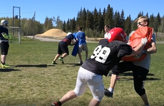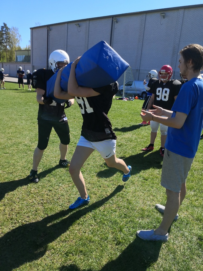 14.30 - 16.30 Treeni II, Nurmikenttä (heads up taklaaminen, roll taklaus, blokkaaminen ja peliharjoittelu hyökkäys&puolustus)