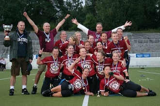 ![]() Kivikataja taklaamassa Oulu Northern Lightsin pallonkantajaa kaudella 2009. | ![]() Helsinki Demons juhlimassa naisten Suomen mestaruutta kaudella 2004. Takarivissä voittoa tuulettavat Heikki Kuusela (vas.), Kalle Karppinen ja Teemu Kuusisto .Anni Kivikataja nostaa kolmikon esimerkeiksi hyvistä ja yksityiskohtaisista jenkkifutisvalmentajista |