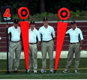 Unofficial red or orange line-to-gain ground markers may be positioned off the sidelines on both sides of the field