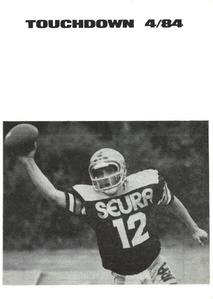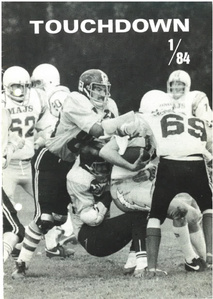 ![Vasemmalla lipunkantajana pelinrakentaja Heikki Jäättelä, päävalmentaja Don Jones, apuvalmentaja Olli Aho ja linjapuolustaja Esa Närhi.]() SAJL jäsenjulkaisu Touchdown 3/1983 | ![Yksityiskohta Vaahteramaljapokaalista.]() SAJL jäsenjulkaisu Touchdown 4/1983 | ![Hyvinkää Falconsin puolustus Munkka Coltsin pallonkantajan kimpussa.]() SAJL jäsenjulkaisu Touchdown 1/1984 |