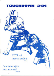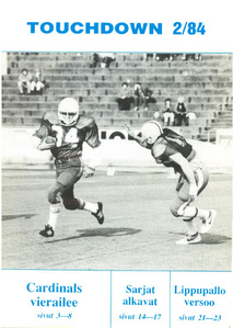 ![Ari Tuuli etenee harjoitusottelussa usa:laista laivastojoukkuetta vastaan.]() SAJL jäsenjulkaisu Touchdown 2/1984 | ![]() SAJL jäsenjulkaisu Touchdown 3/1984 | ![East City Giantsin laitahyökkääjä Jukka Aho tuulettaa.]() SAJL jäsenjulkaisu Touchdown 4/1984 |