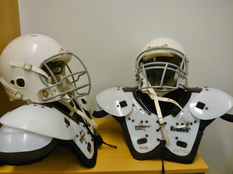 ![]() Kypärät ovat Riddell Revolution Youth ja hartiasuojat ovat mallia Riddell Warrior II. |