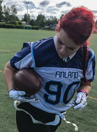 Mikä sai sinut aloittamaan flagin? - Jefukauden 2016 jälkeen siirryin Mikkeliin töiden perässä ja joukkue vaihtui Jaguarsista Bouncersiin. Kausi 2017 meni Bouncersin apuvalmentajana sivurajalla. Pelikauden loputtua syksyllä 2017 nälkä takaisin pelikentille oli jo niin valtava, ettei päävalmentajamme Miia Liukkosen tarvinnut pitkään houkutella mukaan Bouncersin tuolloin käynnistämiin talvikauden flagitreeneihin. Talvella 2017 - 2018 olen pelannut myöskin ensimmäiset Flagin Halli SM-sarjan otteluni. Pelipaikka/ mikä siinä viehättää? - LB/DB. Puolustuksen puolella viehättää etenkin se, että vaaditaan kykyä reagoida etukäteisvalmisteluista huolimatta niin ennalta-arvaamattoman hyökkäyksen pelikuvioihin äärimmäisen nopeasti. Koskaan kun ei voi täysin varmasti tietää mitä vastustajajoukkue on keksinyt puolustuksen päänvaivaksi. Flagissa puolustajaa haastaa lisäksi etenkin se, ettei esimerkiksi kontaktia saa ottaa vastustajaan lainkaan ja tietenkin myös tuo "taklaus", joka suoritetaan pieni lippu vyöltä ryöstämällä, luo omat haasteensa. Miksi kannattaisi aloittaa flagin pelaaminen? - Koska se on ennen kaikkea kaikessa vaativuudessaan ja nopeatempoisuudessaan hauskaa. Lisäksi ainakin itselläni flagi on kehittänyt myöskin pallon/ vastustajan lukutaitoa edesauttaen näin myöskin jefua, jonka kautta flagiin olen alunalkaen tutustunut. TOP4 Euroopan joukkuetta EM-Israelissa? 1. Tanska, hallitseva mestari 2. Israel, kisojen järjestäjämaa, EM 2. edellisistä kisoista vuodelta 2017 3. Iso-Britannia, edellisissä kisoissa pudotti Suomen mitaleilta 4. Suomi, lähdetään kisoihin haastajana uudistuneella kokoonpanolla, toki mitalinkiilto on aina silmissä