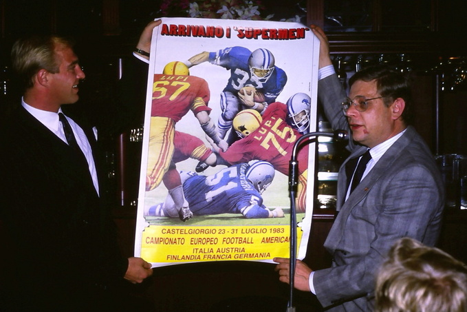 Vas. Risto Luostarinen 1983 EM-kisojen julkistamistilaisuudessa.