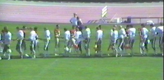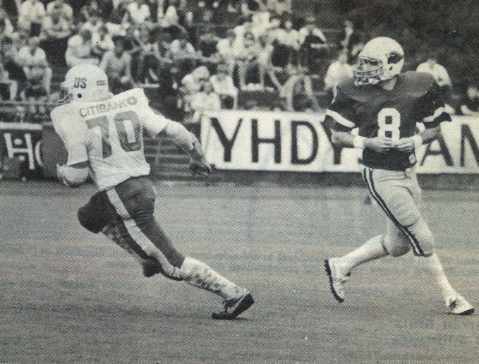 Varsinkin suomalaisten puolustus pysyi ajoittain hyvin mukana ottelussa. Matti Lindholm oli jo tuolloin kentän näkyvin suomalaispuolustaja ja hän haki Jarkko Salmisen kanssa amerikkalaispallonkantajia koko kentän leveydeltä.
