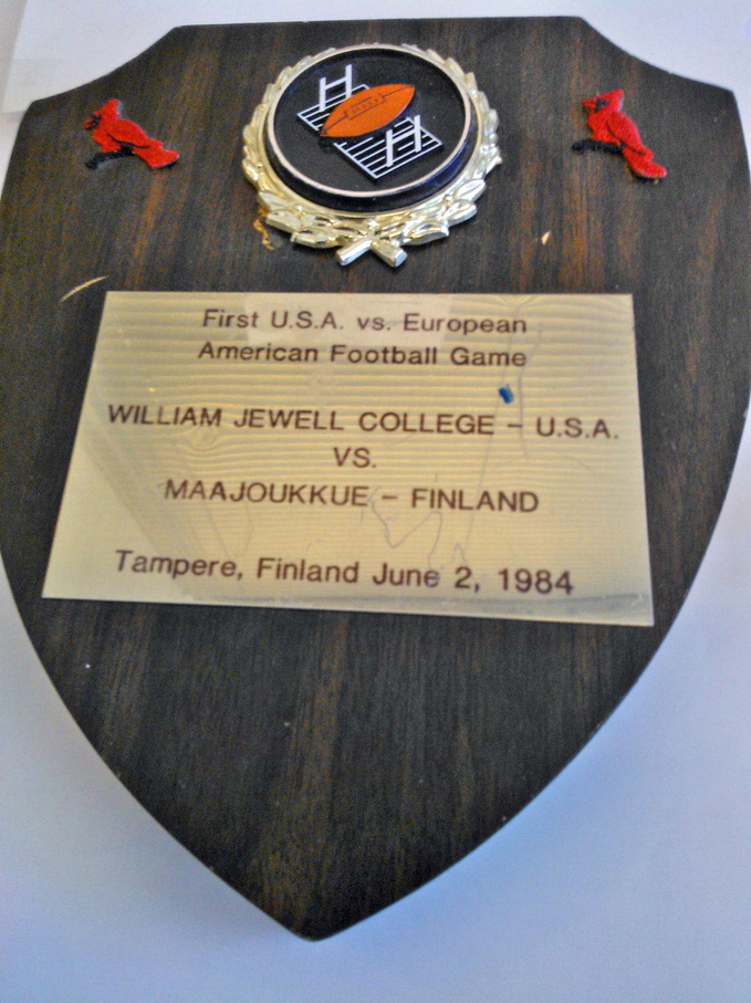 Missourilainen yliopistojoukkue William Jewell Cardinals vieraili ensimmäisenä amerikkalaisjoukkueena Euroopassa. Yliopistojoukkue pelasi historialliset kaksi ottalua Suomen maajoukkuetta vastaan kesäkuun alussa 1984. Cardinals kuului tuolloin NAIA koulujen aatelistoon ja sen voittosaldo oli neljältä edelliseltä kaudelta 47-3 ja lisäksi joukkue oli noussut sarjansa loppuotteluihin neljästi peräkkäin ennen Suomen vierailua. Nykyisin William Jewell pelaa NCAA II-divisioonassa.