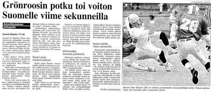 #24 Jarkko Taina vääntää jaardeja Ruotsia vastaan.