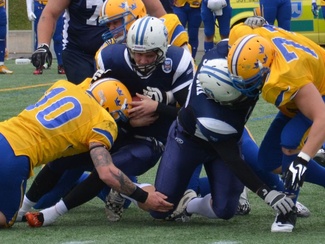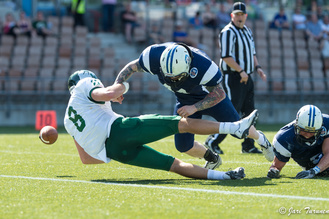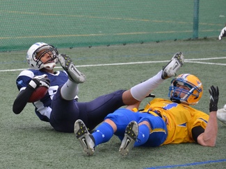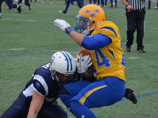 Ville Järviö eteni juoksuilla 15 jaardia ja kahdella kiinniotollaan 20 jaardia.