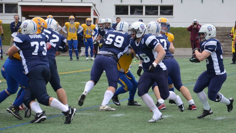 Suomen aloittava pelinrakentaja Miro Kadmiry onnistui viidestä heitostaan vain kerran. Trojansin Joonas Andersson osui paremmin, sillä hänen 11 heitostaan onnistui seitsemän. Niillä Suomi eteni 66 jaardia. Puolustuksen johtohahmo oli Santtu Äyräväinen, joka taklasi 10,5 kertaa, säkitti kahdesti ja lisäksi taklasi pallonkantajan kahdesti miinusjaardeille.
