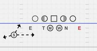 This stunt is run between the DE and the interior DL on his side. We run it on both sides with the call, but obviously this can be a one-side call also.
