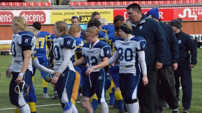 | FIN Tytti Kuusinen - 1-jaardinen juoksu (lisäpiste Sanni Seppälä) | 7–0 |
