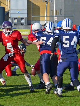 Tero Virtasen ohjaama puolustus oli hyvin kartalla ottelussa. Tanskan pelinrakentajana toiminut Carl Gustav Lindström ei onnistunut heitoissaan ja ainoan juoksuyrityksen taklasi linjassa 15-vuotias Samuli Vehkomäki.