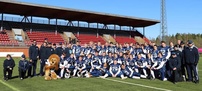 Suomen U19 maajoukkue kaatoi Venäjän EM-karsinnassaSuomen U19 maajoukkue voitti tänään Vantaan Myyrmäessä pelatun EM-karsintaottelun Venäjää vastaan lukemin 69-0 (42-0). Voiton ansiosta Suomi etenee heinä-elokuun vaihteessa Italian Bolognassa pelattavaan U19 EM-lopputurnaukseen. Ottelu rytmi tuli selväksi heti ottelun alussa. Suomen puolustus pelasi vankan ottelun ja pakotti Venäjän kolmen yrityksen jälkeen lentopotkuun. Suomalaisten hyökkäys kiitti hyvistä kenttäasemista ja maali-iloittelun aloitti laitahyökkääjä Santtu Vehkomäki, joka tyylitteli Jere Bymanin 30 jaardin heiton maaliksi. Suomi johti 6-0. Venäjän pelinrakentaja Matfei Gumeniuk oli pakotettu juoksemaan "henkensä edestä". Suomalaisten puolustusmuuri vyöryi takakentällä sellaisella vauhdilla, että kaikki Venäjän heitot tapahtuivat sivuttaisliikkeestä. Tukimies Taavi Aronpää säkitti 10 jaardin mitalla venäläisheittäjän. Tämän jälkeen linjapuolustaja Aleksi Närhi peitti blokatun lentopotkun ja maalasi 6 pistettä lisää pelikellon ollessa 7:54 ensimmäisellä neljänneksellä. Saarijärven potku onnistui ja tilanne 20-0. Linjapuolustaja Edward Vesterinen aiheutti hikisen iltapäivän Venäjän tackle Deigena Ashotille. Vesterinen suoritti seuraavan pistesuorituksen safetyn muodossa, jossa hän pörhälsi ohi heittoblokin ja aiheutti pallonmenetyksen maalialueella. Erotuomarit nostivat kätensä oman maalin merkiksi ja numerot vaihtuvat 22-0. Esityön seuraavalle pistesuoritukselle teki konkaripuolustaja Otto Mäkinen. Hän pasautti pallon irti venäläispallonkantajalta ja pallohaukka Aleksi Närhi peitti vapaan pallon. Kovassa kunnossa oleva 100kg painava Jaakko Salminen käytti lähes virheettömän pelin pelanneen hyökkäyslinjan juoksuväylät hyväkseen ja runttasi kotimaalleen 36-0 johtonumerot. Ensimmäistä kertaa nuorten maajoukkueen hyökkäyskoordinaattorina toiminut Julius Majander antoi vastuuta eri pelaajille. Pelinrakentajaksi toiselle jaksolle vaihtunut Samuli Töyry vippasi pelivälineen pari kertaa Kristian Ristilälle, joka onnistui nappaamaan 10 jaardin heiton maalialueella. Suomi johti puoliajalla mentäessä peräti 42-0. Kun puolustus ei suostunut antamaan edes lähitilanteista maaleja Venäjälle, oli hyökkäyksellä helppo päivä jatkaa hyvistä kenttäasemista. Seuraavaksi esiintymisvuoroon Myyrmäen vihreälle veralle komennettiin August Wahlstein, joka kiitti kunniasta ja juoksi päivän pisimmän maalin 54 jaardia. Lisäpistepeli blokattiin, jonka vuoksi sähköiselle valotaululle välähtivät 48-0 numerot. Seuraavalla hyökkäysvuorolla Suomi eteni tasaisesti kohti kenttäpäätyä, jossa potkunpalautuksissa kunnostautunut Tarmo Pitkänen teki vuorostaan 10-jaardisen heittomaalin. Mercy rule -sääntö oli voimassa toisen puoliajan ja kello kävi tämän vuoksi erityisen vilkkaasti. Silti viimeisellä neljänneksellä oli aikaa vielä tehdä pistesuorituksia. Ensin Jaakko Salminen teki toisen maalinsa ottelussa seitsemän jaardin etäisyydeltä. Kim Saarijärven potku onnistuessa peli oli 62-0. Viimeiset yritykset pelannut neljäs pelinrakentaja Ambro Urjansson heitti komean kaaripallon Kaapo Peurakummulle, joka viimeisteli loppunumeroiksi 69-0. 300 katsojaa sai nähdä tasapainoisen esityksen, jossa Suomi oli kaikilla osa-alueilla edellä itänaapuria. Suomen MVP pelinrakentaja Jere Byman sai kunnian ottaa vastaan palkinnon, jonka olisi voinut jakaa jokaiselle pelaajalle. Päävalmentaja Tero Virtanen lämpeni ottelun loppua kohden. Syynä oli kuitenkin se, että Italian lämpimän ilman lopputurnaus alkoi häämöttää todellisena. Kolmen yksikön; hyökkäyksen, puolustuksen ja erikoisjoukkueiden toiminta oli hyvällä tasolla ja pelaajat toteuttivat ottelussa valmentajien ohjeita lähes täydellisesti. Valmistautumisessa Virtanen ja kumppanit olivat tällä kertaa pelanneet harjoitusottelun, jonka ansiosta isoimmat virheet jäivät tekemättä. Kaikki pelaajat saivat peliaikaa ja kaksikymmentä eri puolustuspelaajaa sai tilastomerkinnän ottelussa. Venäjä sai ottelussa vaatimattomat 67 hyökkäysjaardia kasaan. Suomen hyökkäys onnistui 440 jaardin verran. Venäjän MVP-pelaajaksi valittiin keskushyökkääjä Ivan Bunakov. Venäjän U19 joukkue koostui pelaajista eri puolilta maata. Pääosa 25 pelaajan yksiköstä tuli Moskovasta ja Pietarista. Moscow United on ollut viime vuosien mestari sarjassa, jossa on ollut kuutisen joukkuetta vuosittain. EM-kisoihin ovat selvinneet Suomen lisäksi turnausjärjestäjä Italia sekä Itävalta, Ruotsi, Tanska ja yllätyksellisesti Norja, joka kukisti Ison-Britannian. Hollanti on myös mukana lopputurnauksella voitokkaan Espanja-ottelun johdosta. Viimeisen paikan vienee Ranska, joka pelaa Slovakiaa vastaan karsinnan. |