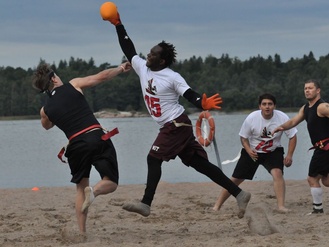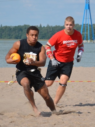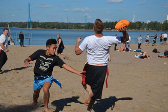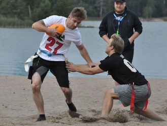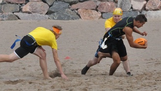 Action Bronsonin tahdissa ja lämpimässä syyskuun auringossa pelattiin uudistuneilla IFAF säännöillä maustetut beach flagin SM-kisat. Kuusi joukkuetta pelasi napakat alkulohkot. Välierissä P-Town Porvoosta voitti Helsinki Hangoversin. Toisessa välierässä Old School otti nuorten miesten Hesburger Kingsien haasteen vastaan.