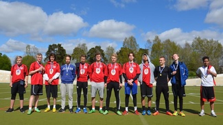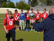 ![]() Järvenpään Henri Jussila valmistautuu liputukseen. | ![]() PHYK Pohjois-Haagasta pronssia. | ![]() Yhteiskoulu Järvenpäästä hopeaa. |