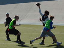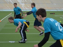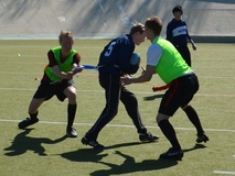 Albert Edelfeltin koulujoukkue laitettiin kasaan pari viikkoa sitten ja joukkue harjoitteli muutaman kerran. Joukkueessamme oli hyvä heittäjä, taitavia kiinniottajia skeä sopivan rämäpäinen pallonkantaja. Osa pelaa lätkää, sentteri oli salibandy maalivahti, muutamalla on jenkkifutistaustaa.