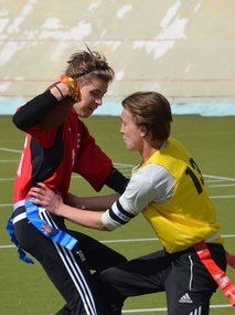 Yläkouluikäisten 5vs5 ottelut pelattiin kahdeksen eri koulun kesken tällä kertaa Velodromin harjoituskentällä. Velodromin pääareenan laineita täynnä olevaa kenttämateriaalia liimattiin kuumeisesti kuntoon ja tapahtumapaikka vaihtui lennossa harjoituskentälle.