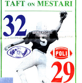 Amerikkalaisen jalkapallon loppuotteluita YLE:n elävän arkistossa. 2.9.1985 1985 finaali: TAFT - Poli 31.8.1986 1986 finaali: Roosters - Espoo FT Scotch 13.9.1987 1987 finaali: Roosters - Trojans 20.8.1988 1988 finaali: Roosters - Colts 13.8.1989 1989 finaali: Colts - East City Giants |