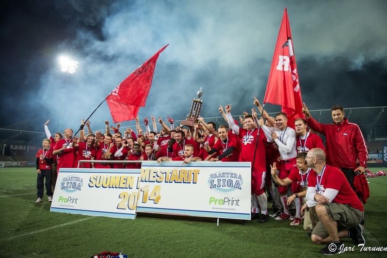 ![]() Helsinki Roosters palasi mestaruuskantaan. Valokuva:Jari Turunen |