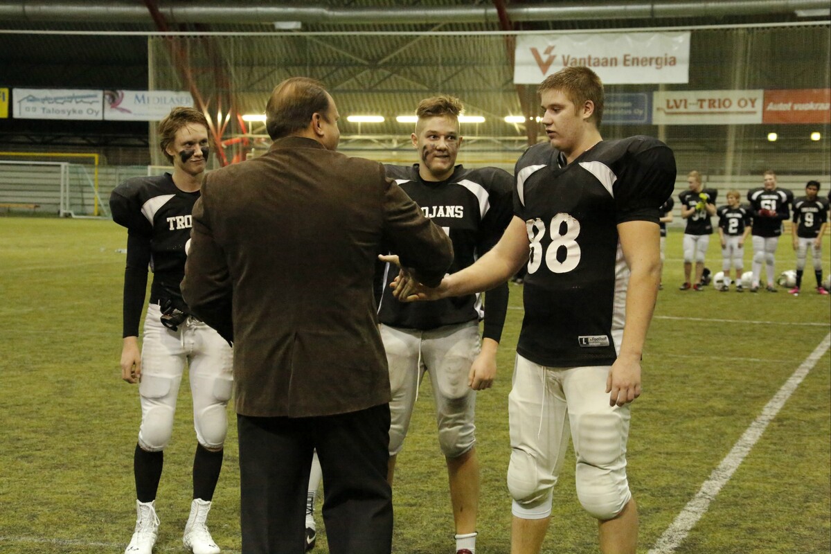 Turnauksen voittajat sarjoittain: U15 Turku Trojans U13 Espoo Devils U11 Vantaan TAFT